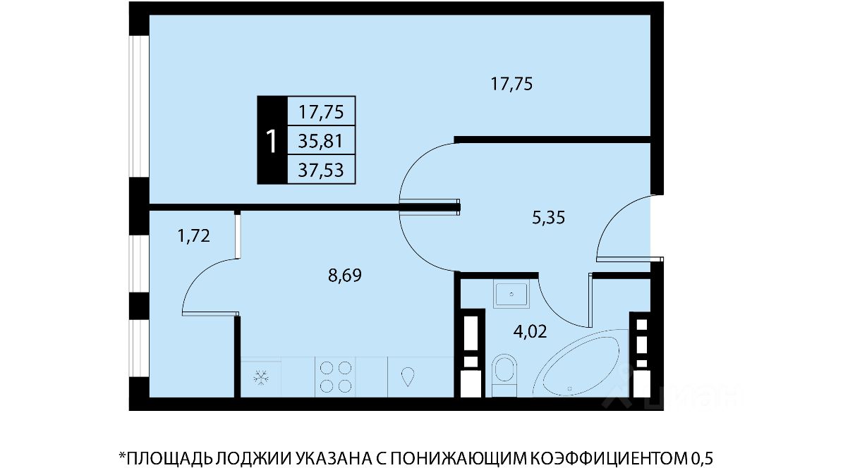 Общая площадь37,53 м2