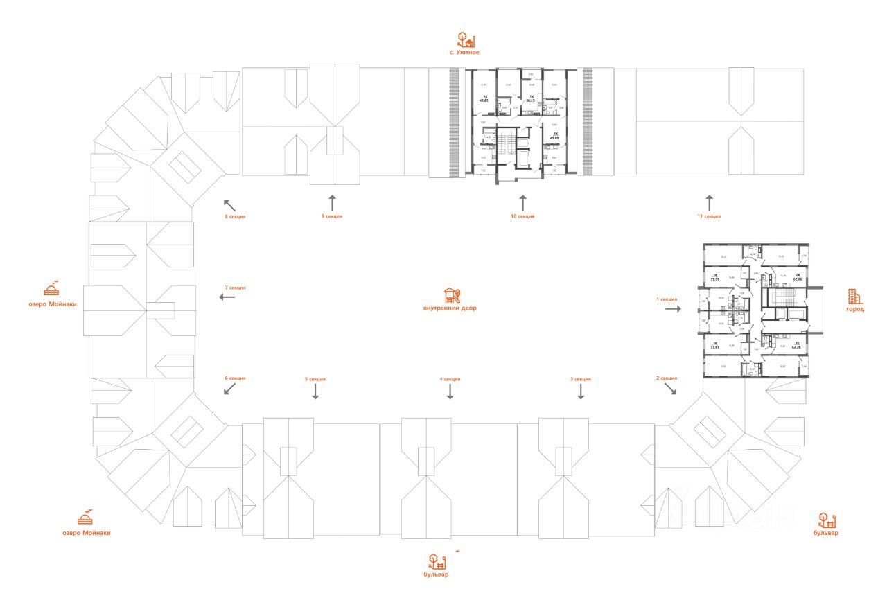 Преимущество ''Мойнако'': •общая территория проекта - 70 га •благоустроенная набережная озера Мойнаки - 40 га •8 приватных жилых кварталов •5 резиденций элит-класса •просторные входные группы с местами хранения колясок и велосипедов •школа XXI века для 1 100 учеников •детский сад на 280 мест •нейродинамические площадки •торгово-развлекательный центр •6 бассейнов для разных сценариев отдыха •1800 м² зона СПА •более 3000 м² центр восстановительной медицины и грязелечения •рестораны авторской и черноморской кухни •тренажерный зал, теннис и падел-корты