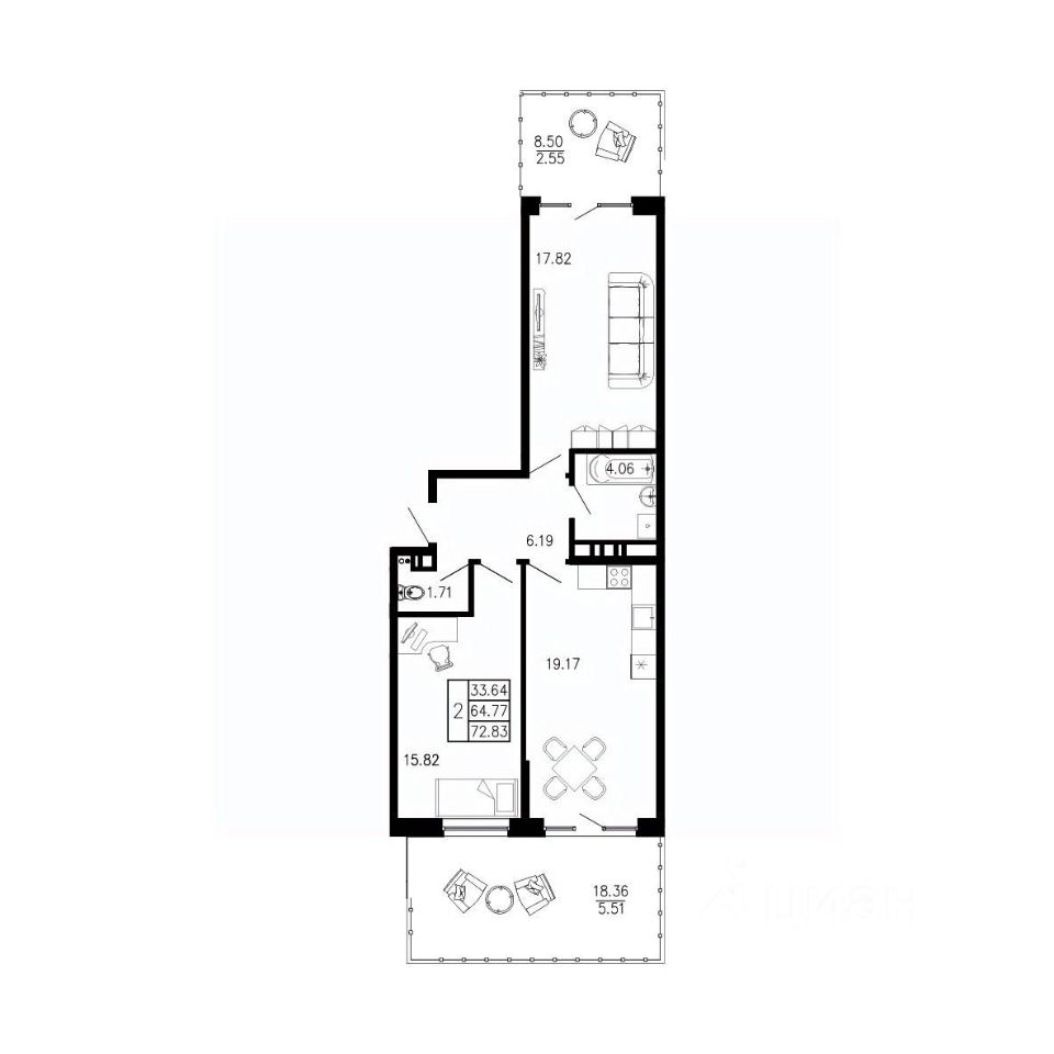 продам 2-к, Приморский13 837 700 ₽