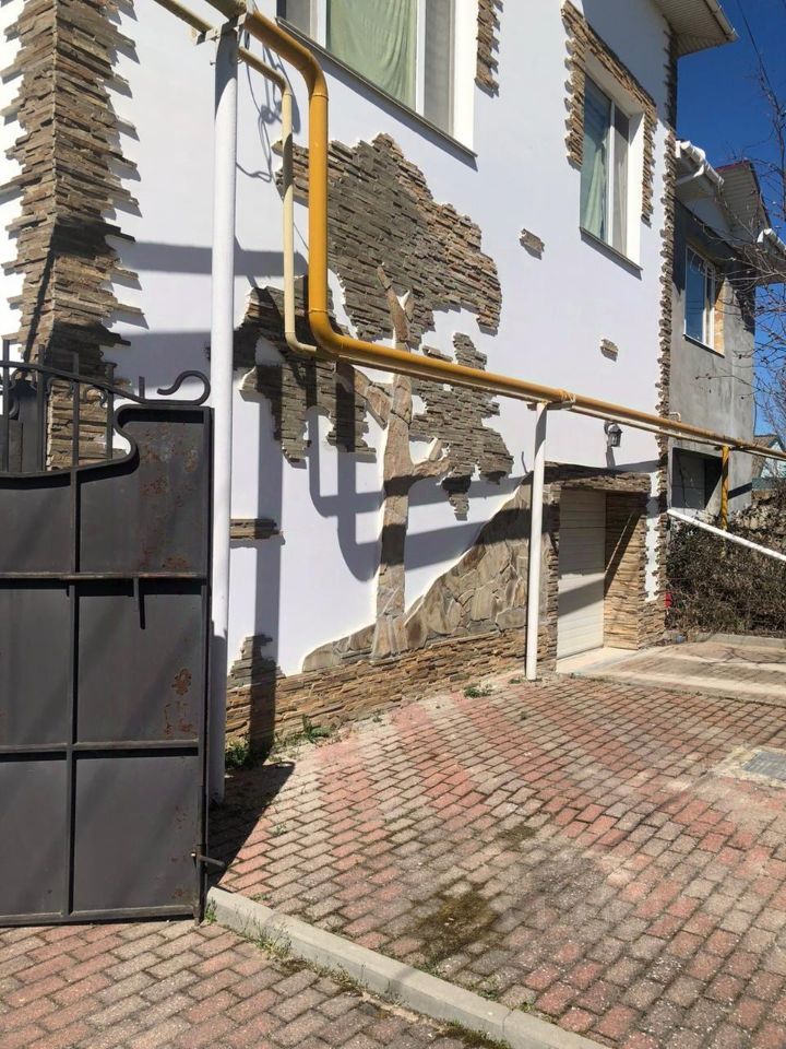 Продам шикарный 3х этажный дом и на участке 7,5 соток,так же расположен гостевой домик с мансардным этажом,в домике 3 не большие комнатки,гостиная,санузел с душевой и кухня,домик отапливается 2 контурным газовым котлом,установлен напольный кондиционер,просторный двор с беседкой из камня,уложен тротуарной плиткой и за домиком есть сад из фруктовых деревьев,там же качеля,есть место,как минимум для 3х машин,кроме гаража в доме для одной машины,с улицы гараж открывается пультом и с гаража можно зайти на первый этаж дома,на котором прихожая, лестничный марш,ведущий на второй и третий этаж,саузел большая кухня столовая и гордость хозяина, сауна с бассейном и комнатой для отдыха,с прихожей через террасу выход во двор. второй этаж,большая гостиная,две комнаты и ванная с санузлом и выход на просторную террасу, на третьем так же большая гостиная ,две комнаты и санузел. И это всё в 500 метрах от Золотого пляжа,в посёлке Береговое,посёлок расположен вдоль берега,в 7 минутах на автомобиле от Феодосии.Место курортное,со множеством гостиниц,кафешек,магазинов,есть школа и детсад. Документы РФ,срок владения более 10 лет,дом строился для себя из дорогостоящих материалов,по семейным обстоятельствам вынуждены продавать,стены из природного камня ракушечник в камень,плиты перекрытия железобетонные,большой дом так же отапливается 2х контурным газовым котлом,горячая вода и отопление в любое время года и суток. Все вопросы по телефону,заинтересованным могу скинуть видео на вотсап.
