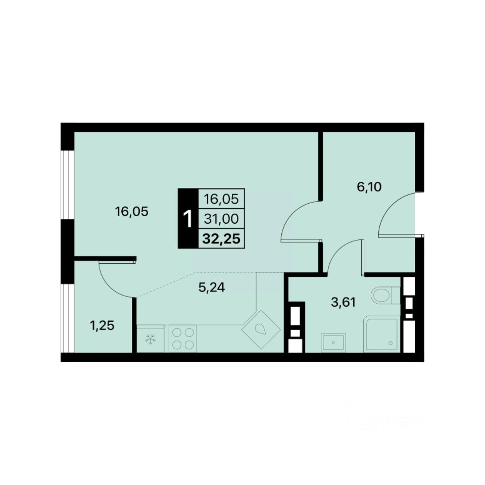 Общая площадь32,25 м2