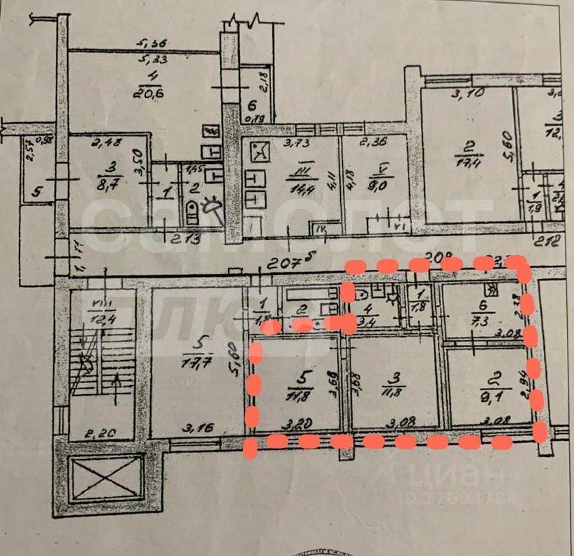 Дополнительно к квартире есть 1/3 пользования общей кухней на этаже и кладовая комната, так как дом имеет статус общежитие - малосемейка.