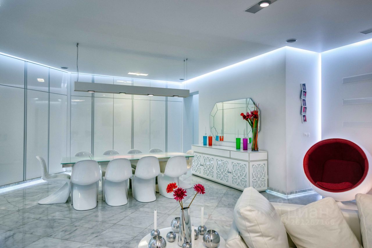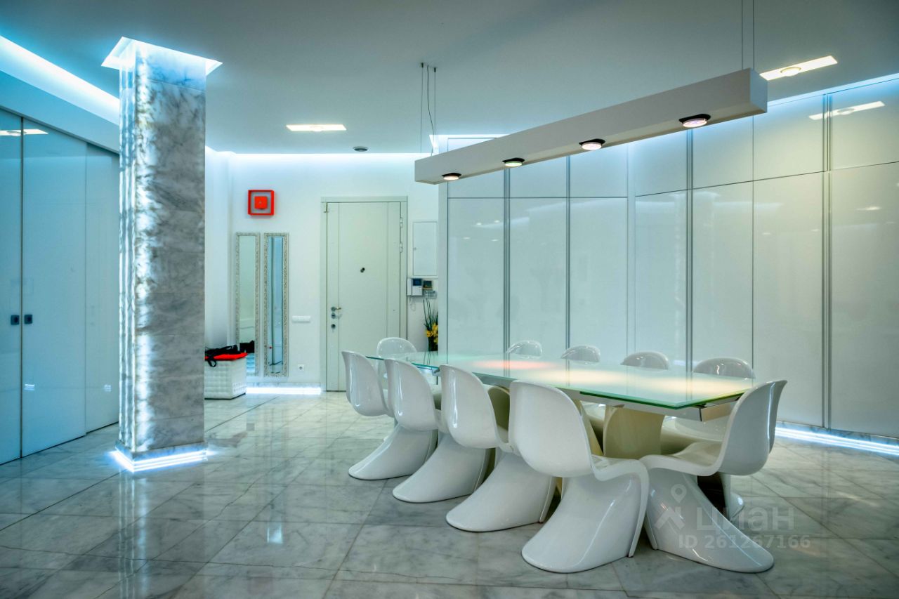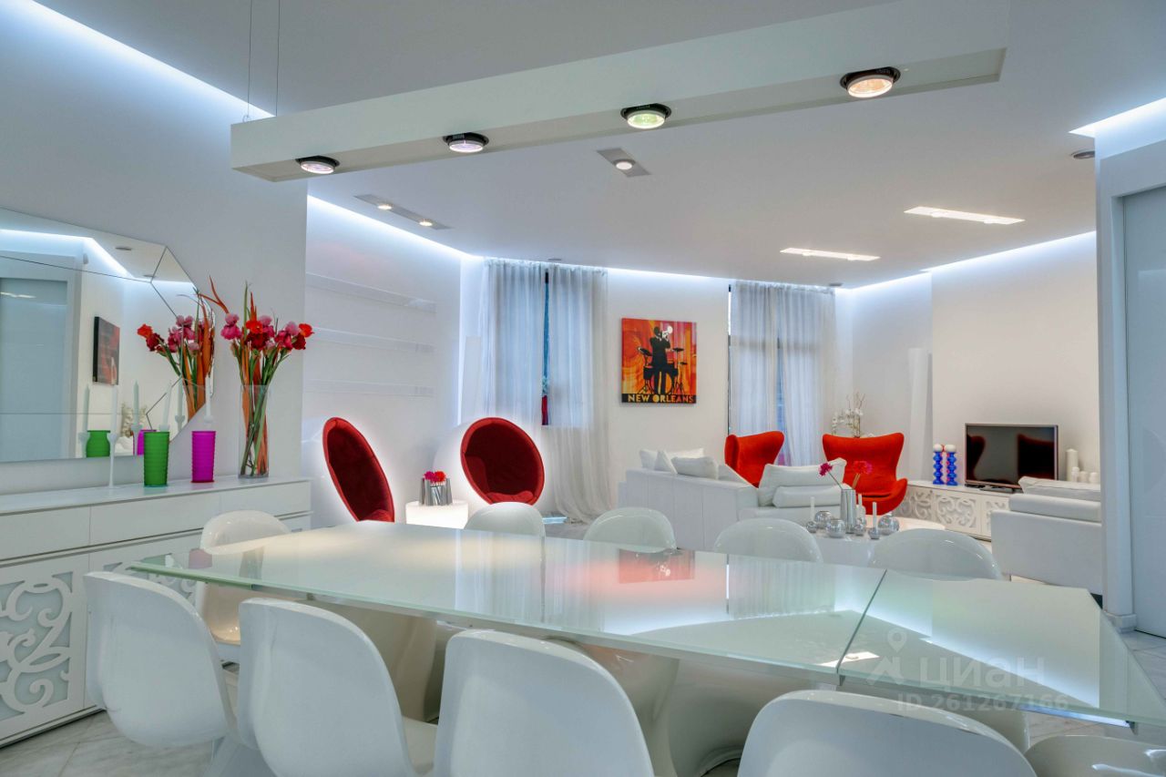 Квартира располагается на 2-ом этаже 5-ти этажного дома. Общая площадь квартиры 193,1 кв. м. В квартире 4 изолированные спальни, 2 из них детские, а также шикарная гостиная, кухня. Два больших санузла, в одном из которых установлена душевая кабина, в другом ванная, и гостевой санузел с душем. В квартире выполнен великолепный дизайнерский ремонт. Жилые комнаты обставлены итальянской мебелью, оборудованы современной бытовой техникой. Полы облицованы мрамором. Авторский дизайн продуман до мелочей. Здесь есть все необходимое для комфортного проживания и отдыха. Хорошо охраняемый клубный дом скрыт зеленью парка от посторонних глаз, городской суеты, шума и пыли.