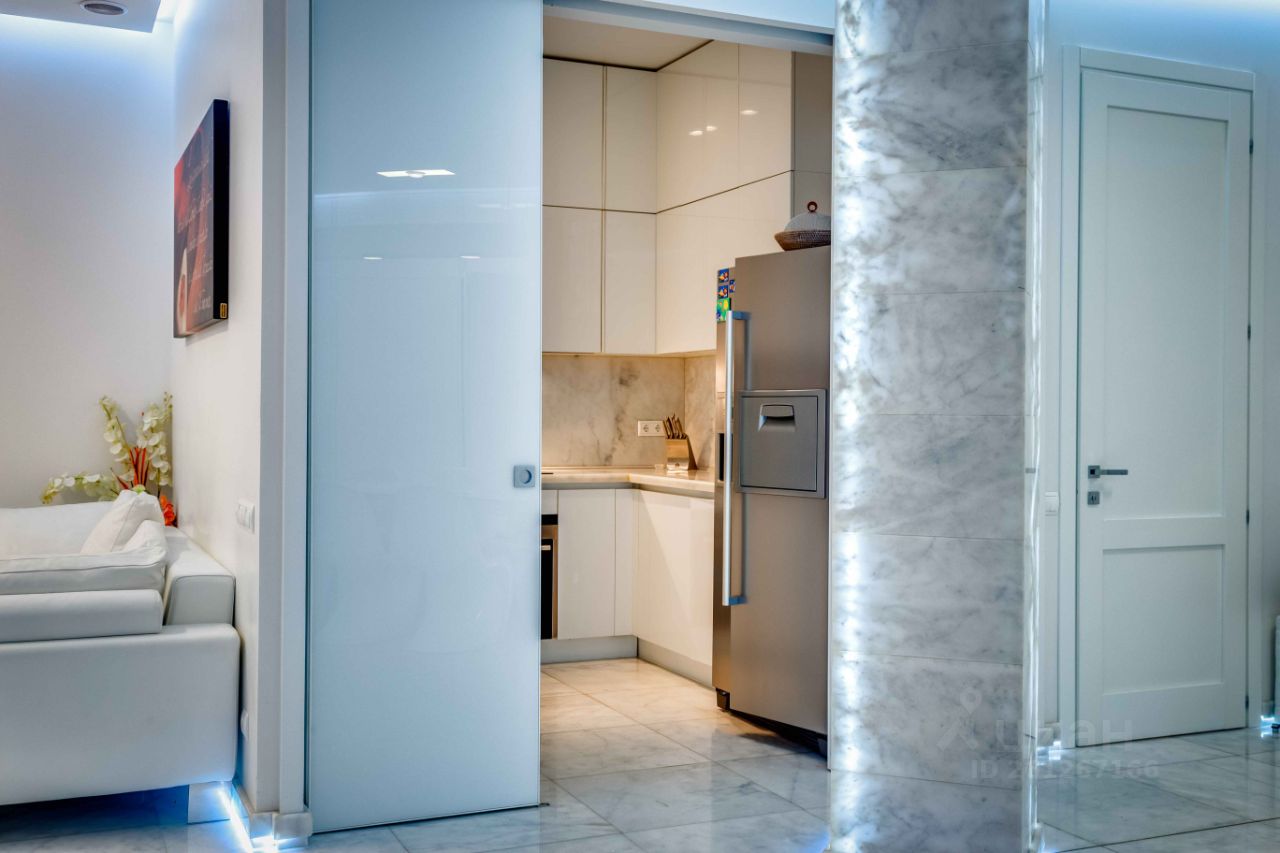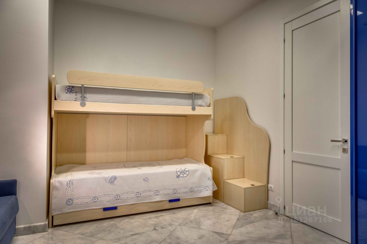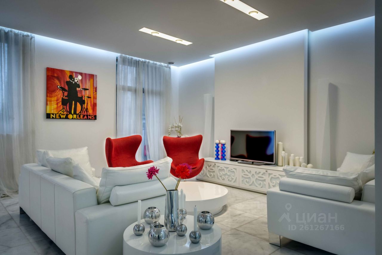 Квартира располагается на 2-ом этаже 5-ти этажного дома. Общая площадь квартиры 193,1 кв. м. В квартире 4 изолированные спальни, 2 из них детские, а также шикарная гостиная, кухня. Два больших санузла, в одном из которых установлена душевая кабина, в другом ванная, и гостевой санузел с душем. В квартире выполнен великолепный дизайнерский ремонт. Жилые комнаты обставлены итальянской мебелью, оборудованы современной бытовой техникой. Полы облицованы мрамором. Авторский дизайн продуман до мелочей. Здесь есть все необходимое для комфортного проживания и отдыха. Хорошо охраняемый клубный дом скрыт зеленью парка от посторонних глаз, городской суеты, шума и пыли.