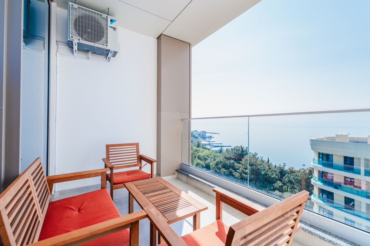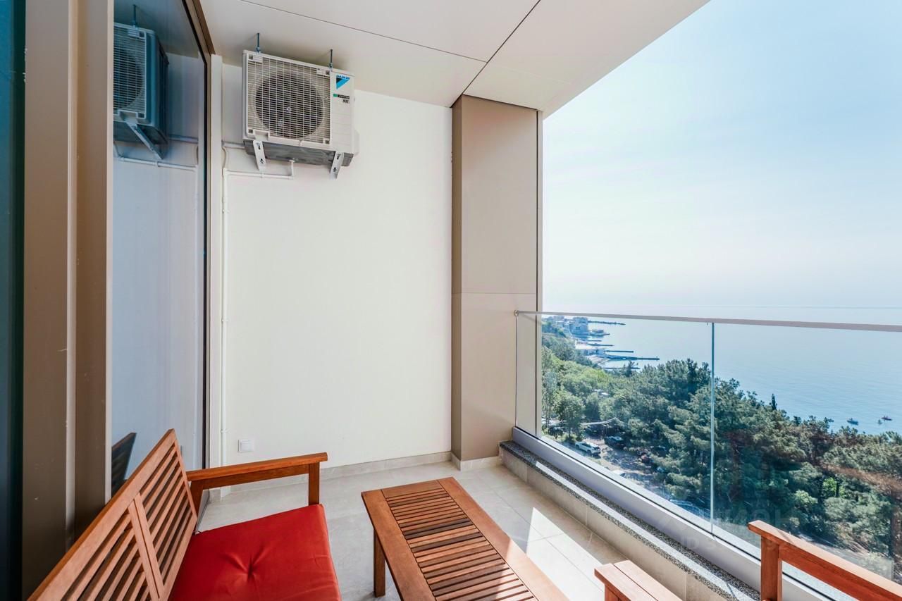Апартамент расположен на 7 этаже. Из окон и террасы открывается вид на море.