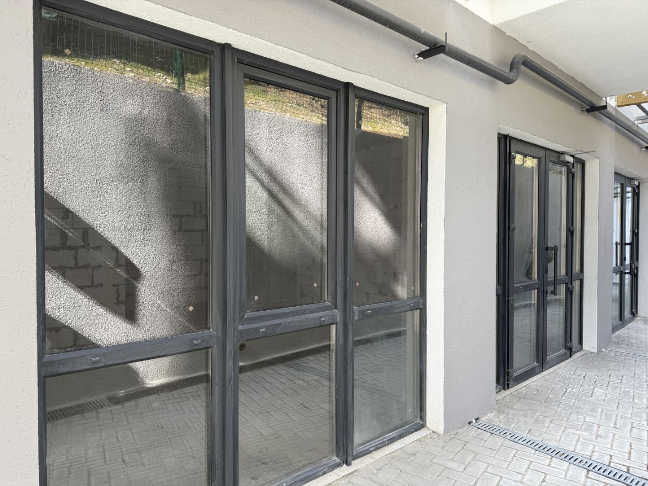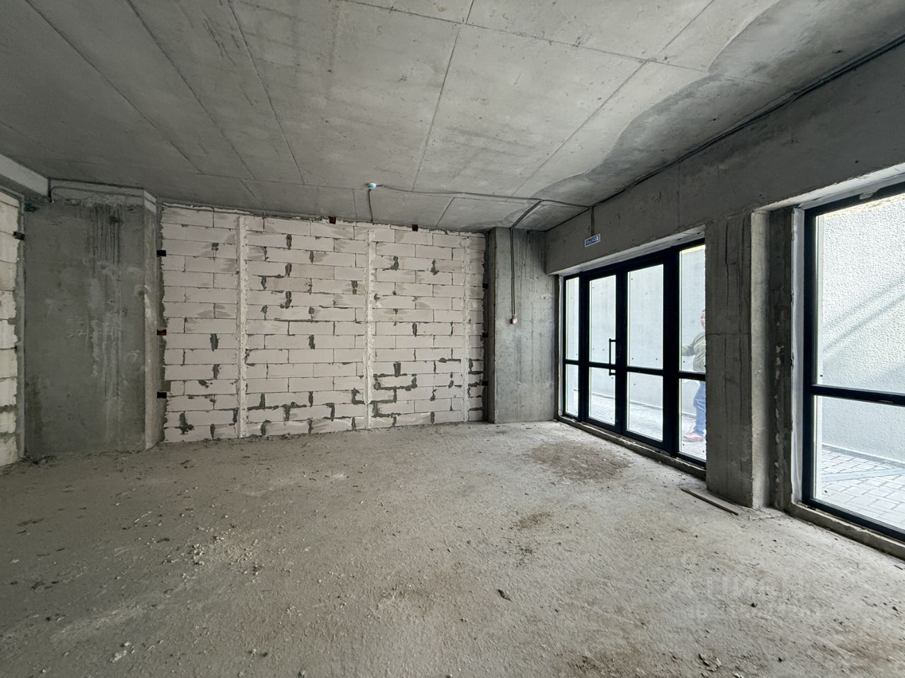 В помещении выполнено остекление в пол, два больших окна.