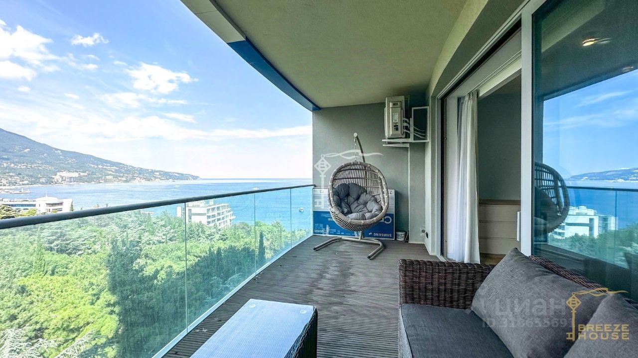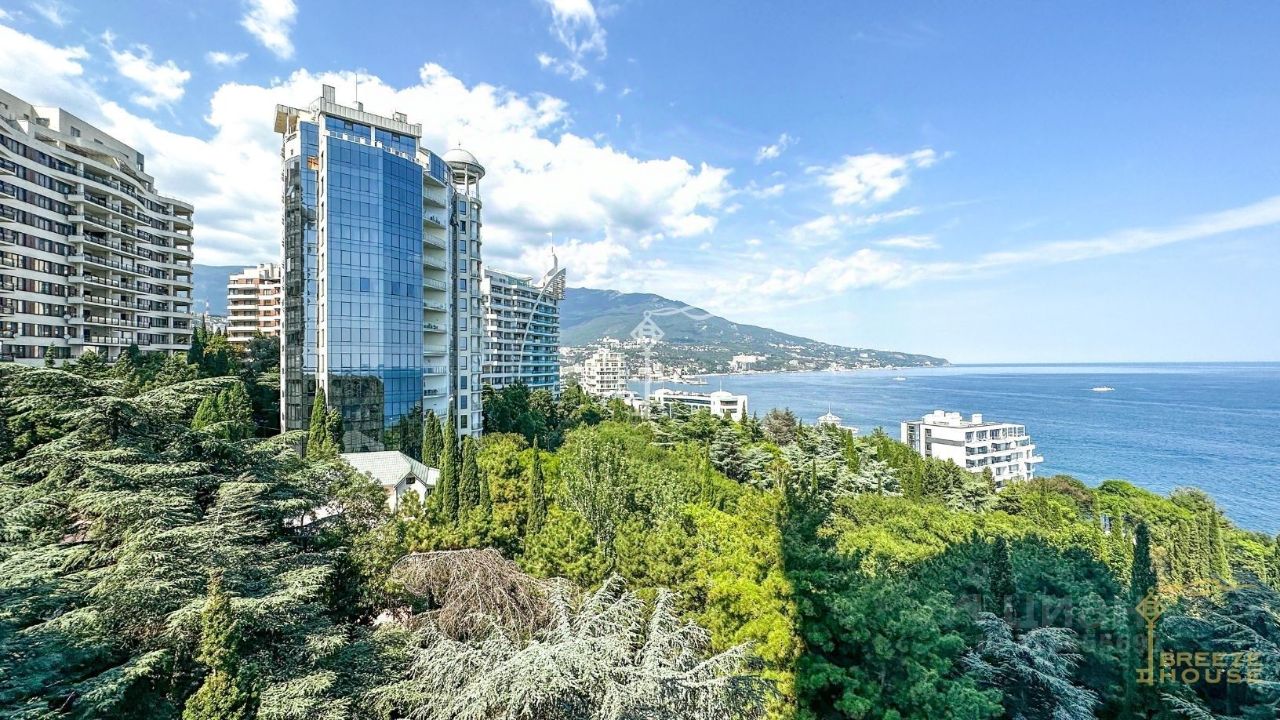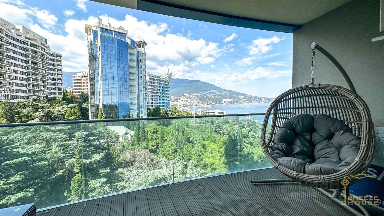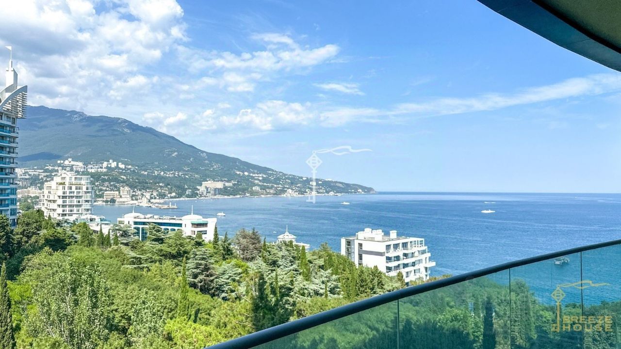 Продаются трехкомнатные премиум-апартаменты площадью 99,5 м² с видом на горы, Ялту и боковым видом на море, расположенные на 7 этаже рекреационного комплекса ''Зазеркалье'' в элитном районе - Приморском Парке им. Гагарина.