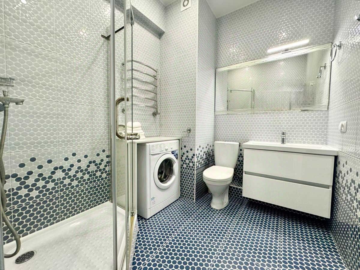 Кухня 7 м2, санузел 6,1 м2, комната 10 м2, гостинная 19 м2, балкон 10 м2. Продается с мебелью и техникой. Консьерж сервис, закрытая территория, парковка в комплексе подземная и за шлагбаумом во дворе. Бассейн. Коммуникации: автономная крышная котельная на дом, бойлер на горячую воду, индукционная плита (газа нет), теплые полы в ванной комнате.