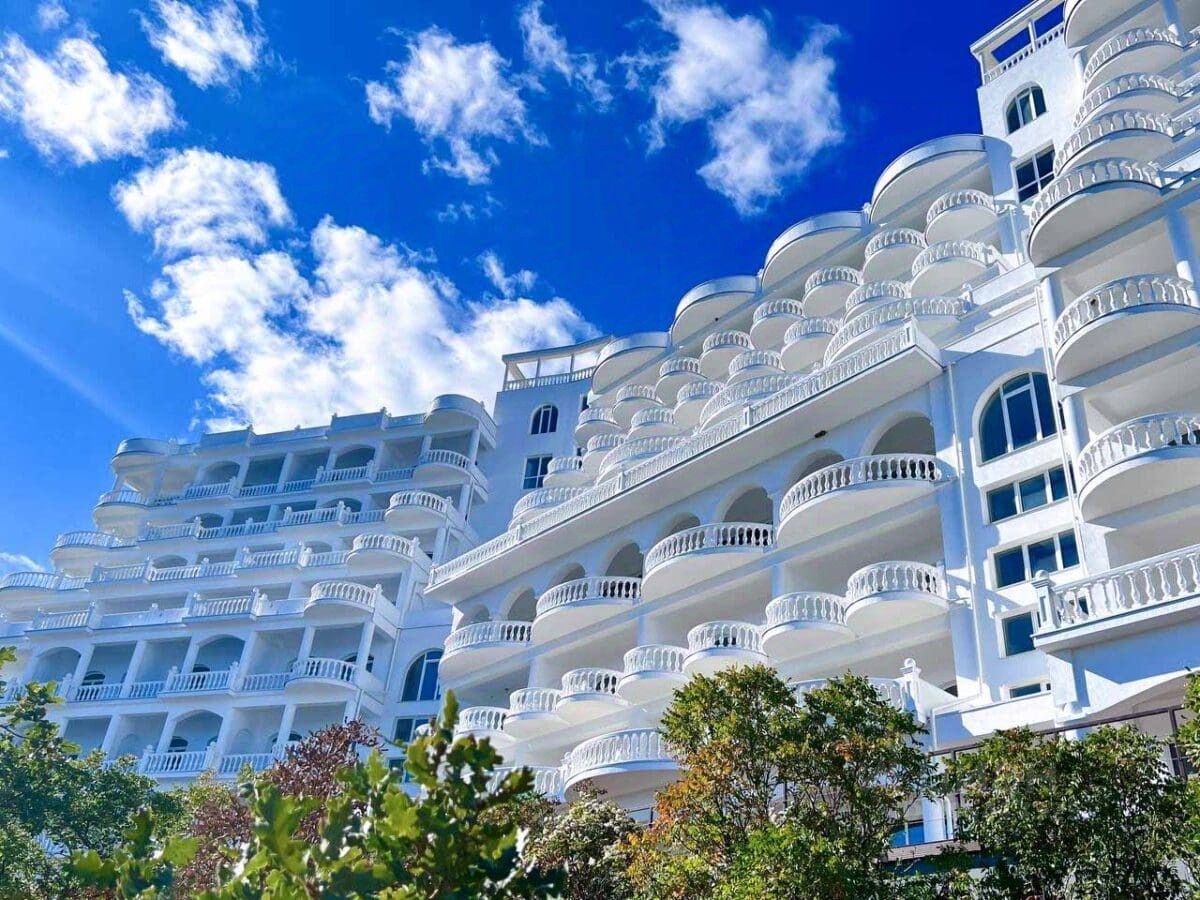 В комплексе 2 лифта, консьерж-сервис, паркинг на территории, благоустроенная территория с прогулочными зонами, рядом вся необходимая инфраструктура. Коммуникации: водоснабжение и водоотведение, электричество — центральные. Отопление электрическое. Локация: до пляжа 100 м, до аэропорта 77 км, до набережной Ялты 30 км, до Алушты 15 км, до парка имени Айвазовского в Партените 8,5 км.