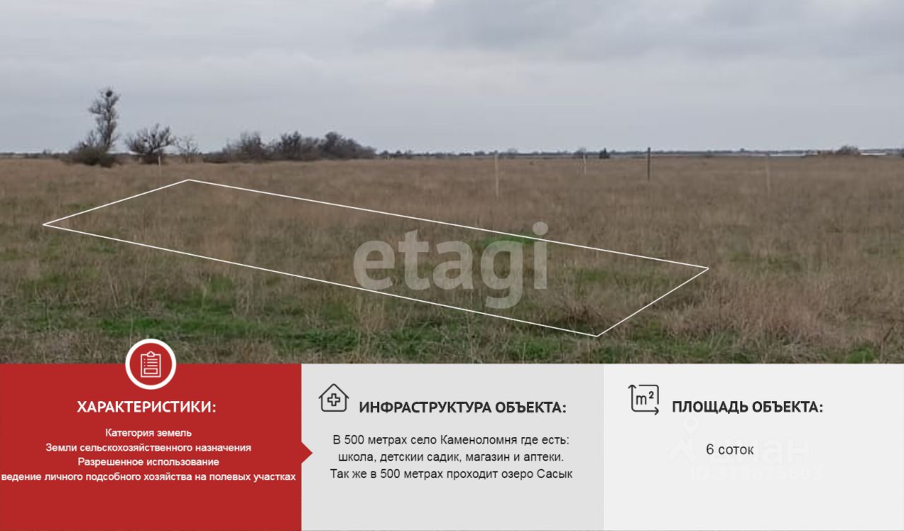 Продается участок площадью 6 соток, в 500 метрах село Каменоломня.