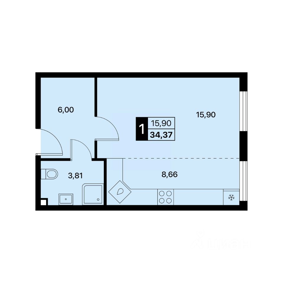 продам 1-к, Партенит Парк ЖК7 755 900 ₽