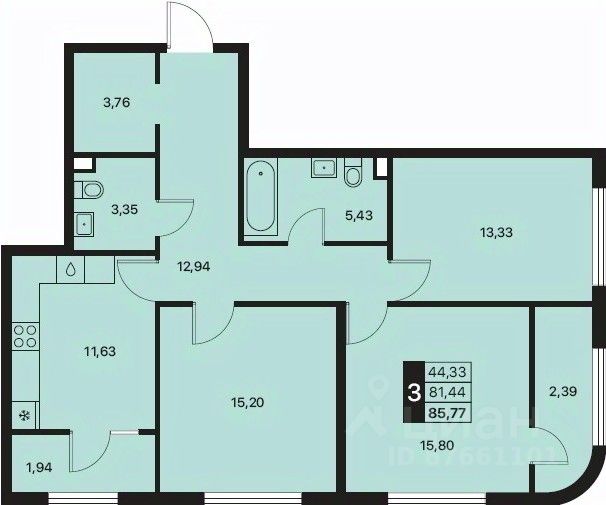 Общая площадь85,77 м2
