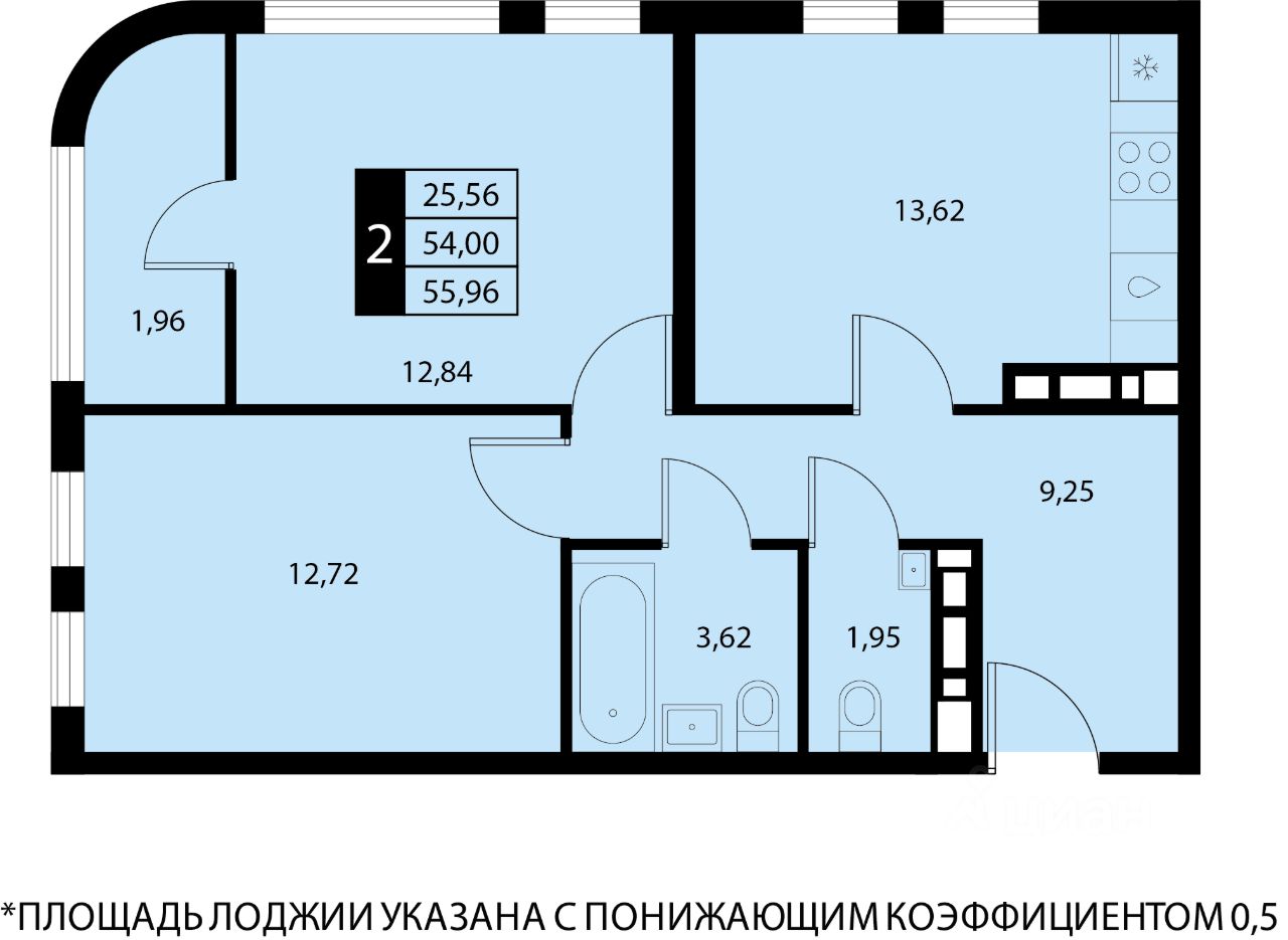 Общая площадь55,96 м2