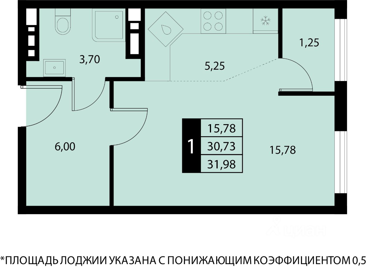 Общая площадь31,98 м2