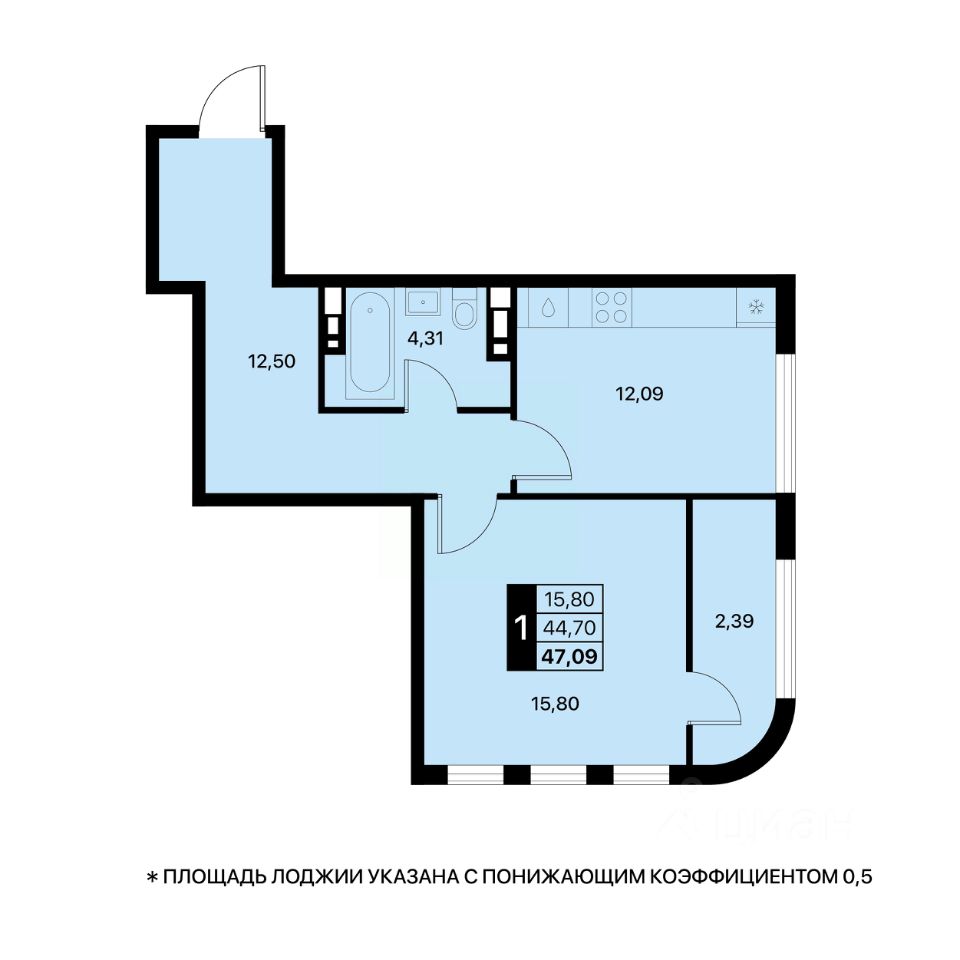 Общая площадь47,09 м2