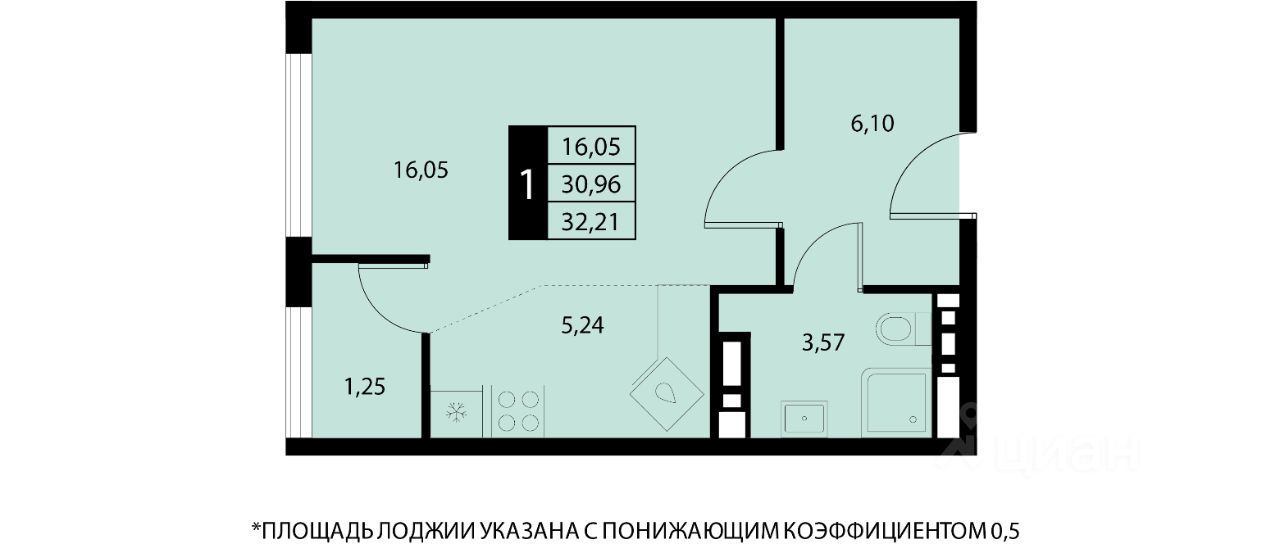 Общая площадь32,21 м2