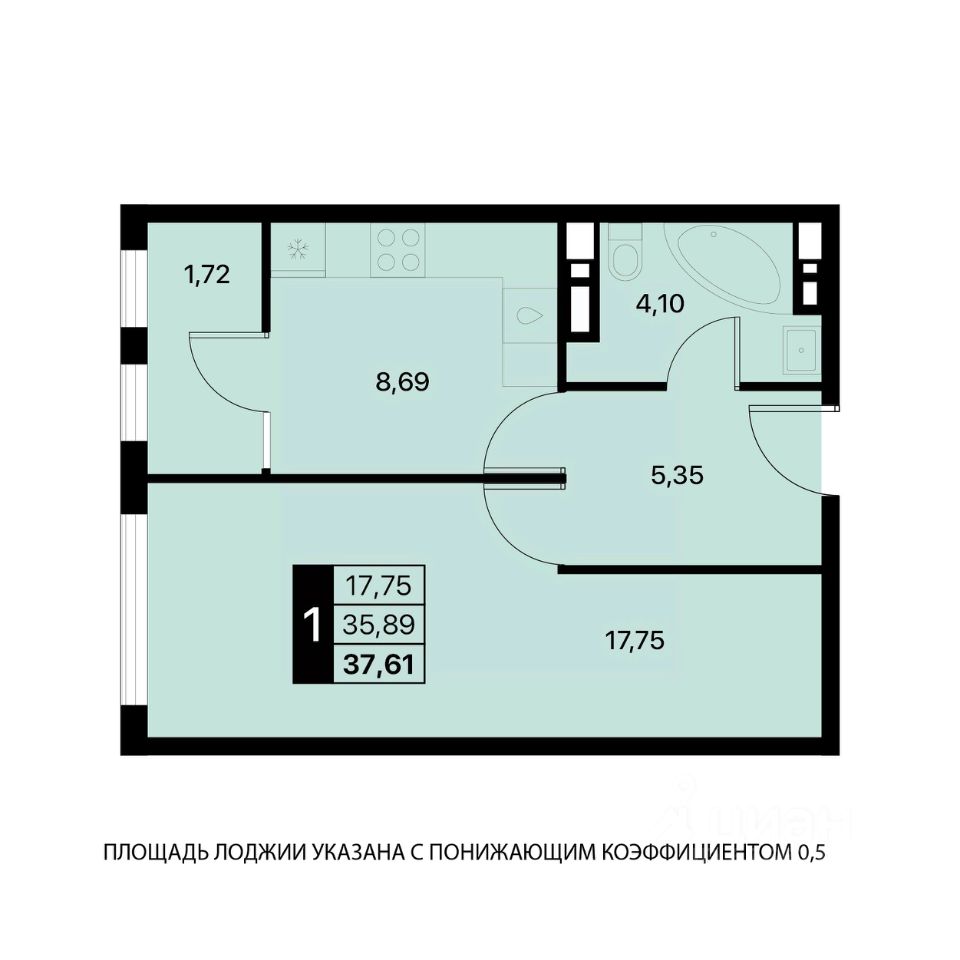 Общая площадь37,61 м2