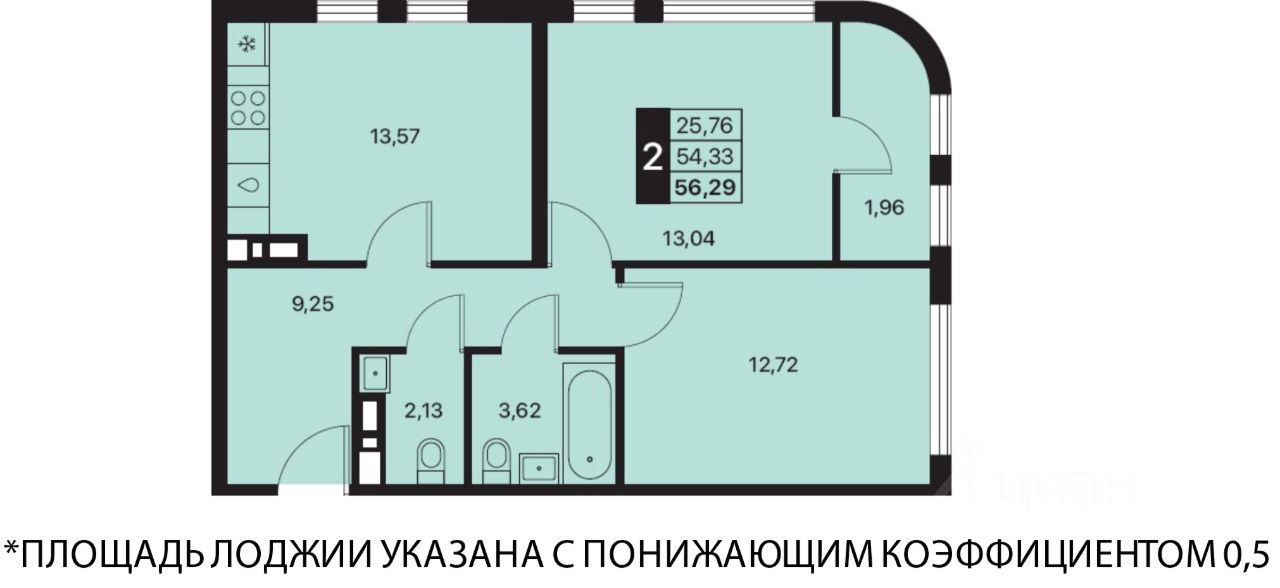 Общая площадь56,29 м2