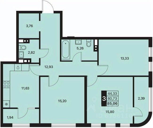 Продаётся 3-комнатная квартира в строящемся доме (Корпус 1), срок сдачи: III-кв. 2026, общей площадью 85.06 кв.м., на 3 этаже. Жилой комплекс ''Партенит Парк'' в поселке городского типа Партенит городского округа Алушта в республике Крым.