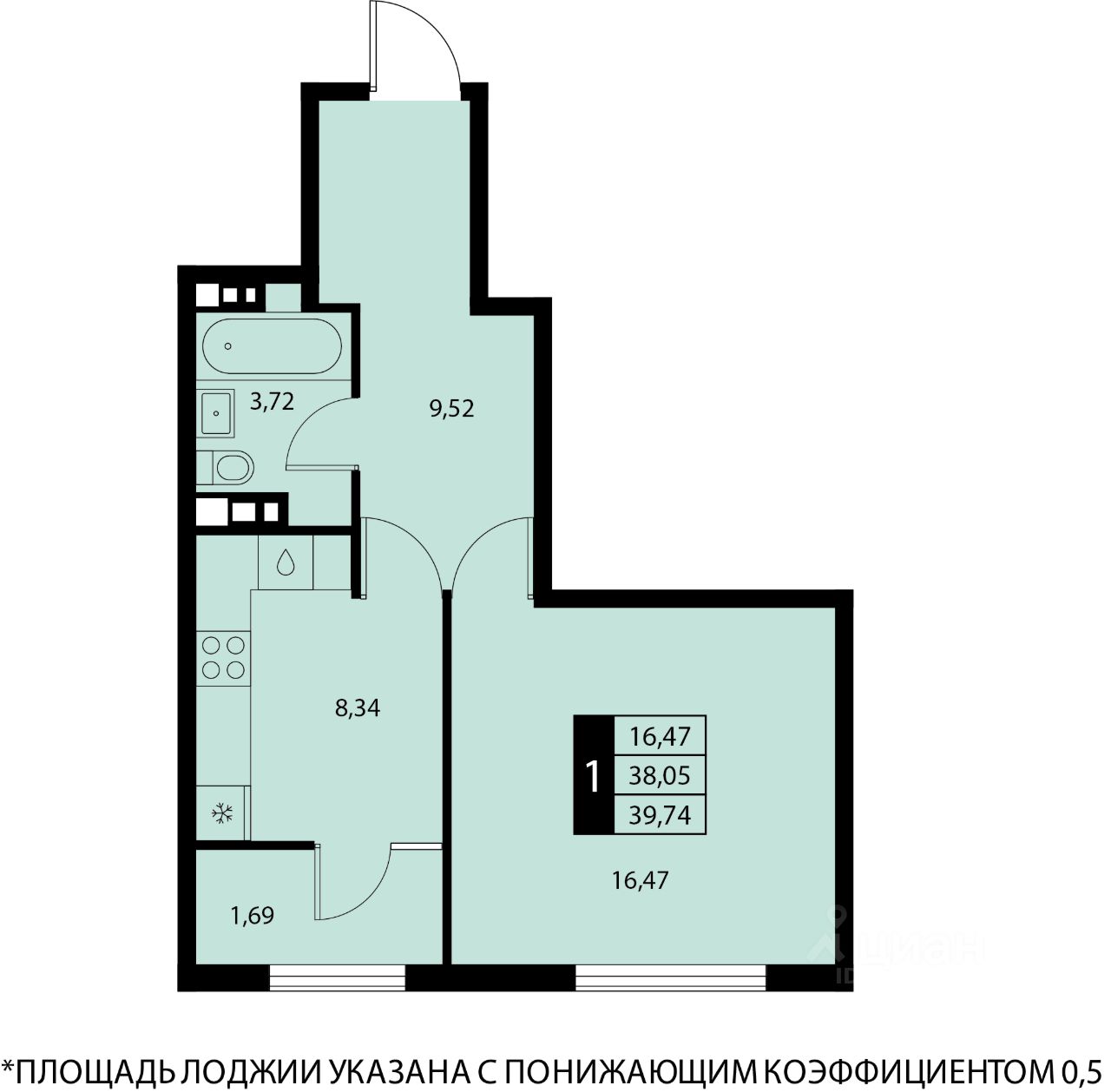 Общая площадь39,74 м2