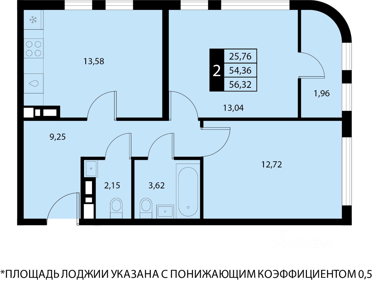 Общая площадь56,32 м2