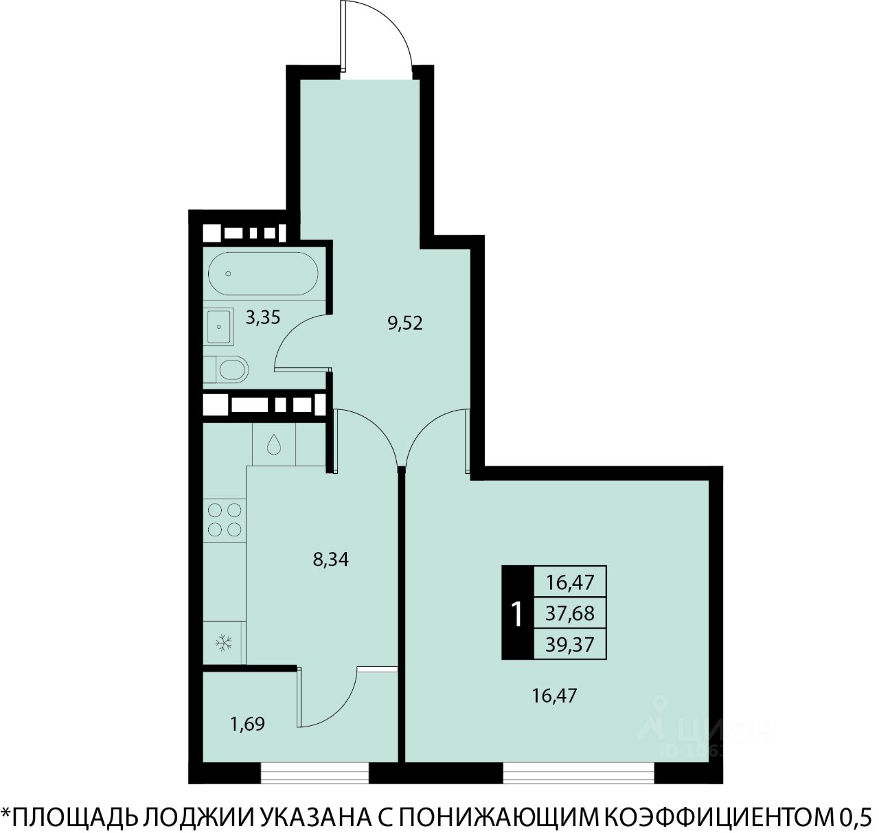 Общая площадь39,37 м2