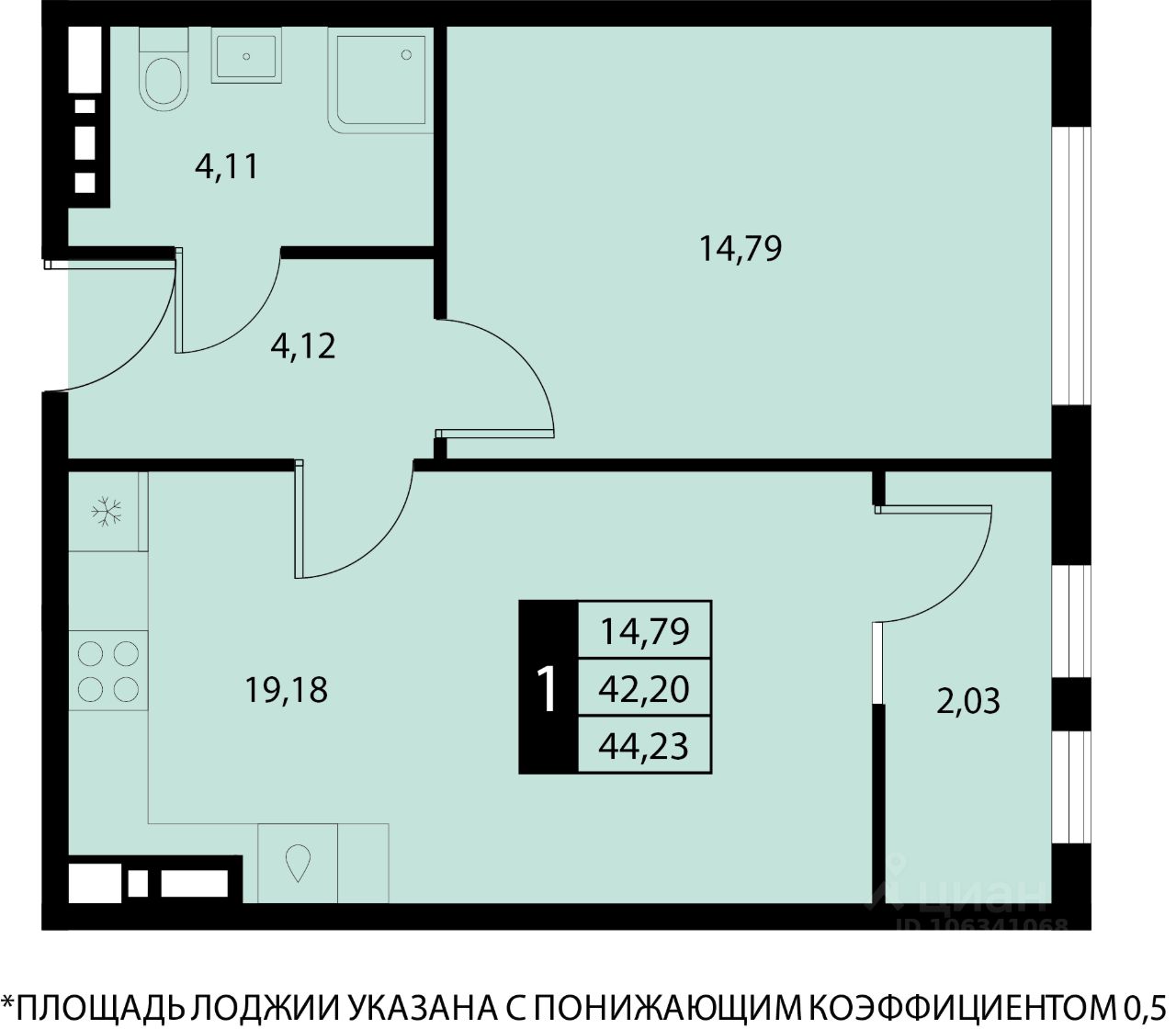 Общая площадь44,23 м2