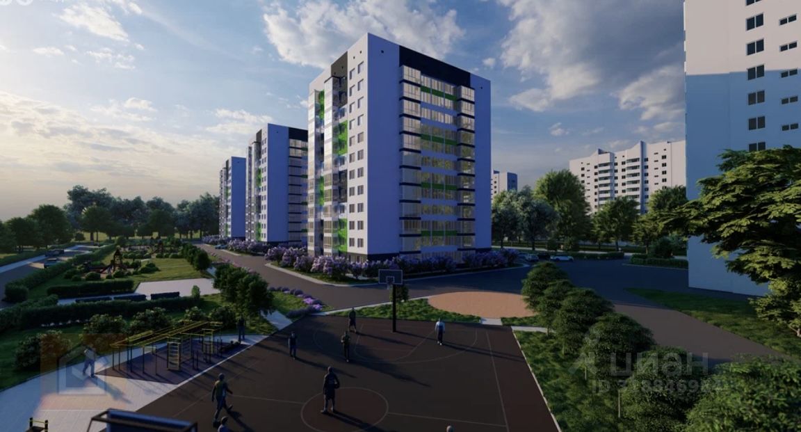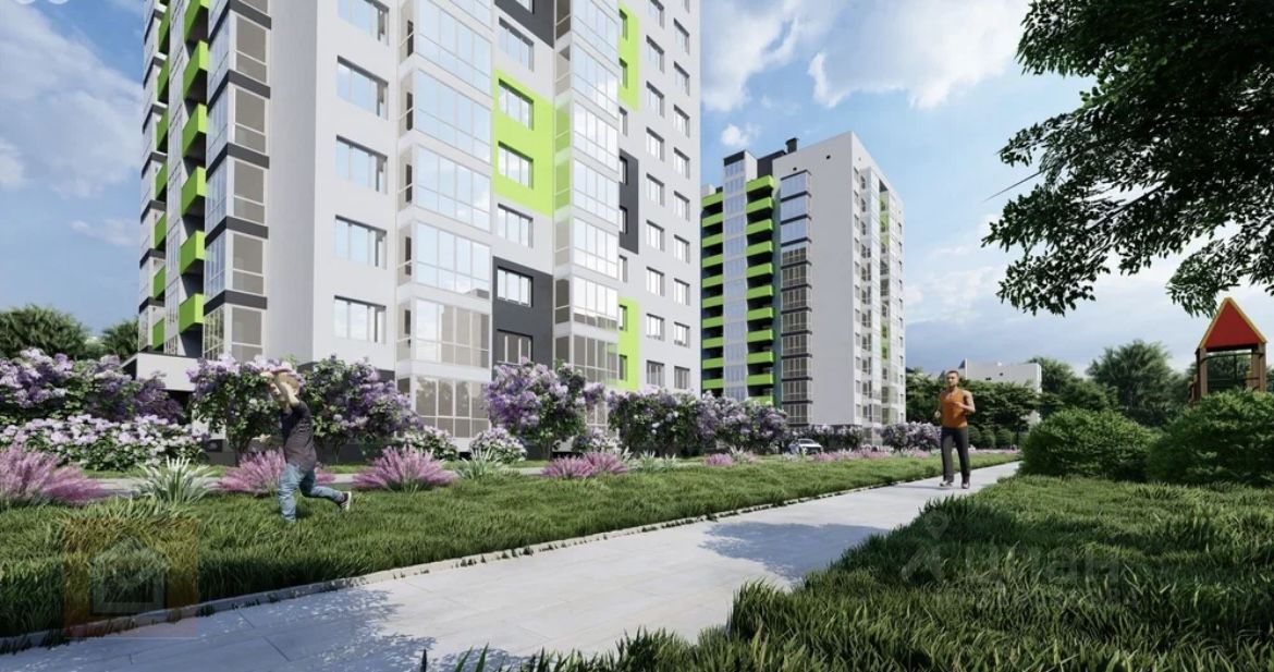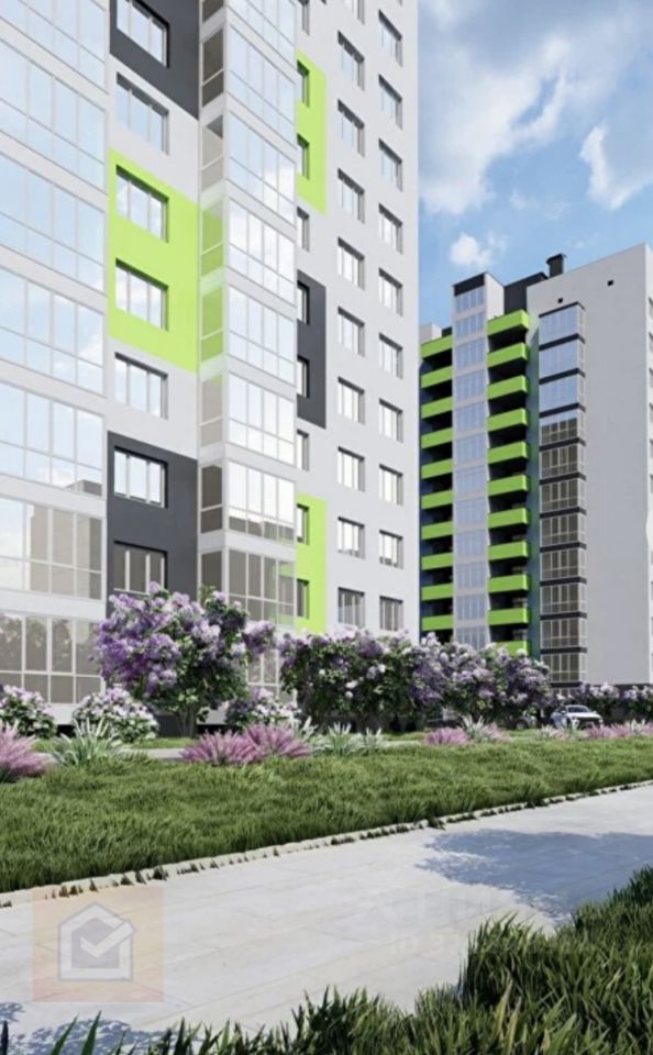 Этот новый дом будет состоять из 12 этажей. Важно отметить, что придомовая территория красиво благоустроена, с газонами, на которых растут розы, удобными лавочками для отдыха, а также детскими и спортивными площадками с мягким покрытием. Также в этом районе можно найти спортивные тренажеры и большое количество парковочных мест.