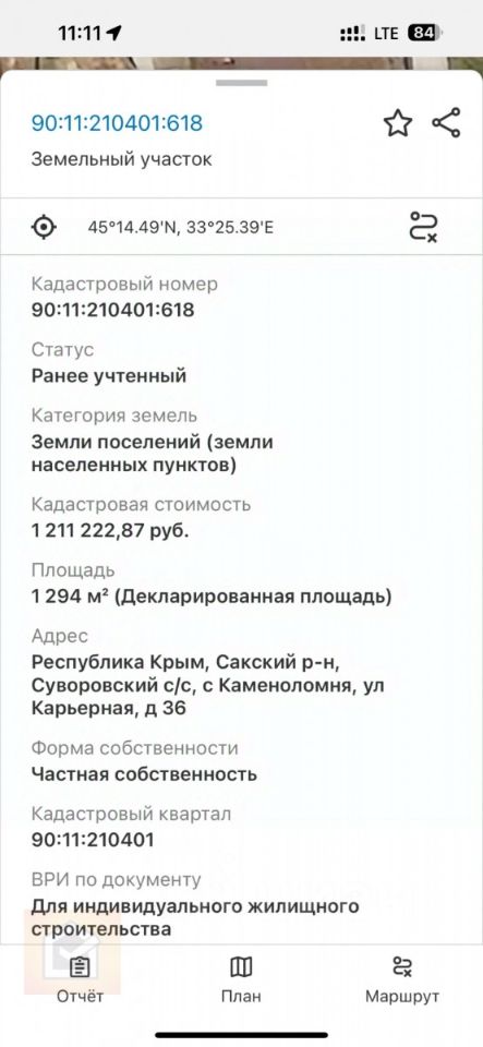 Заинтересованные люди могут взглянуть на кадастровый номер участка - 90:11:210401:618