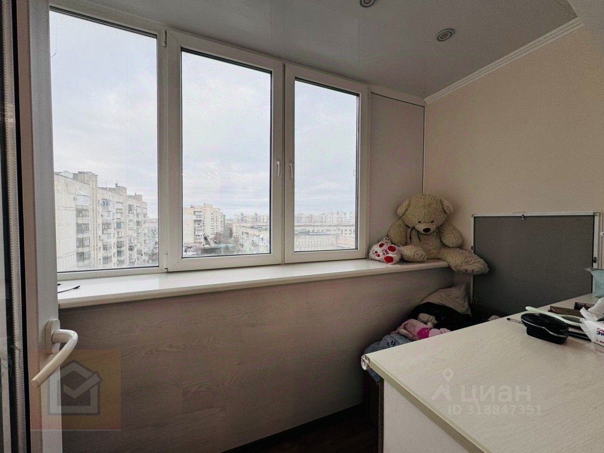 Просторная квартира, общей площадью 63,1 м² Кухня-гостинная 27 м² , спальня 11,3 м² и детская 8,3 м². В квартире был выполнен качественный ремонт в 2019 году, была полностью заменена электрика, выполнена перепланировка - были объединены две зоны в кухню-гостинную площадью 27 кв.м. Выполнено зонирование под гардероб. Выгодная планировка (распашонка), комнаты расположены справа и слева от коридора. Просторные и уютные балконы с новыми стеклопакетами, используются максимально полезно. С южной стороны открывается прекрасный вид на город и море. Коммуникации центральные.
