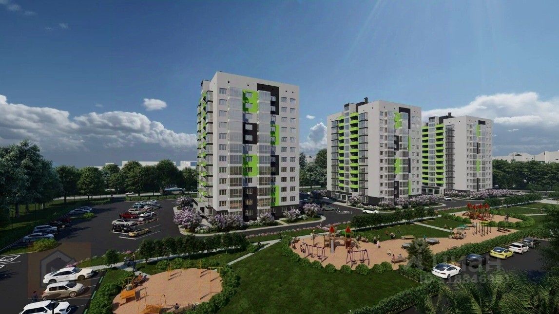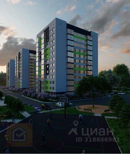 Этот новый дом будет состоять из 12 этажей. Важно отметить, что придомовая территория красиво благоустроена, с газонами, на которых растут розы, удобными лавочками для отдыха, а также детскими и спортивными площадками с мягким покрытием. Также в этом районе можно найти спортивные тренажеры и большое количество парковочных мест.