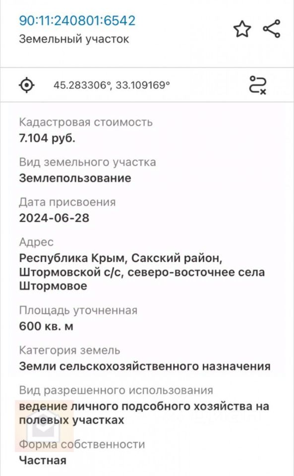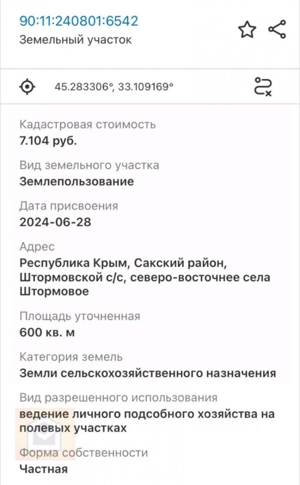 продам земельный участок, Штормовое950 000 ₽