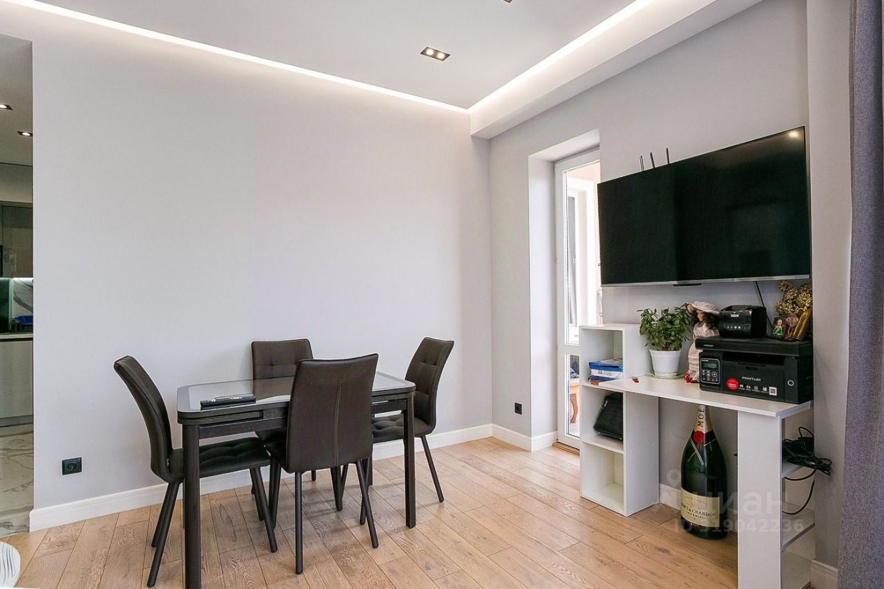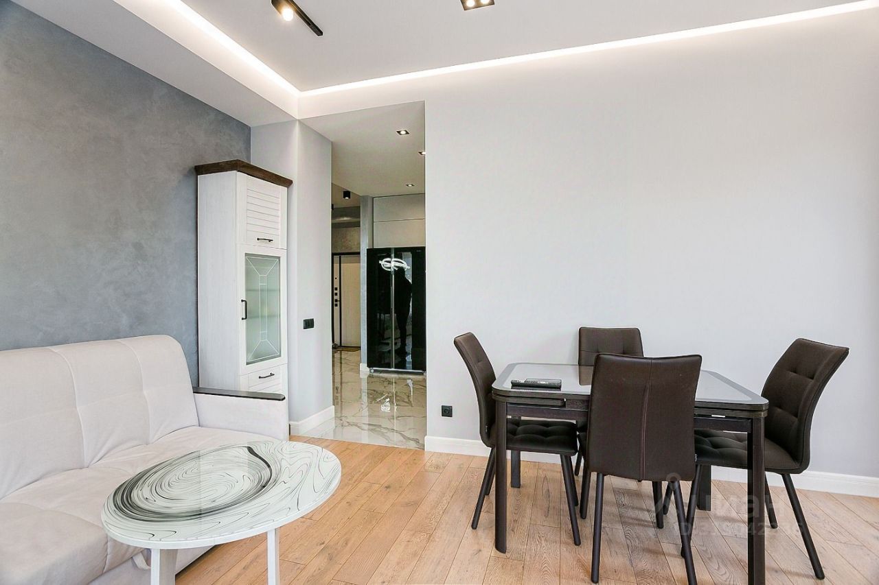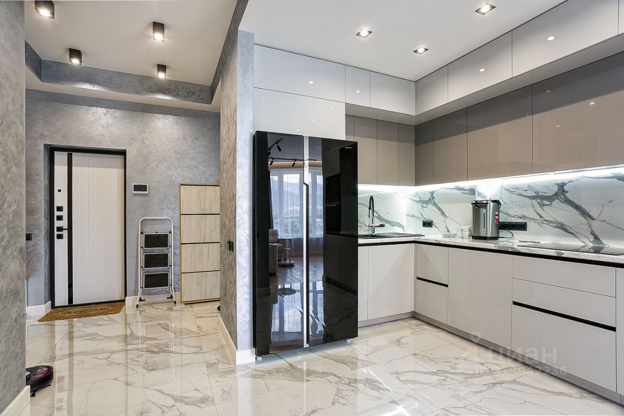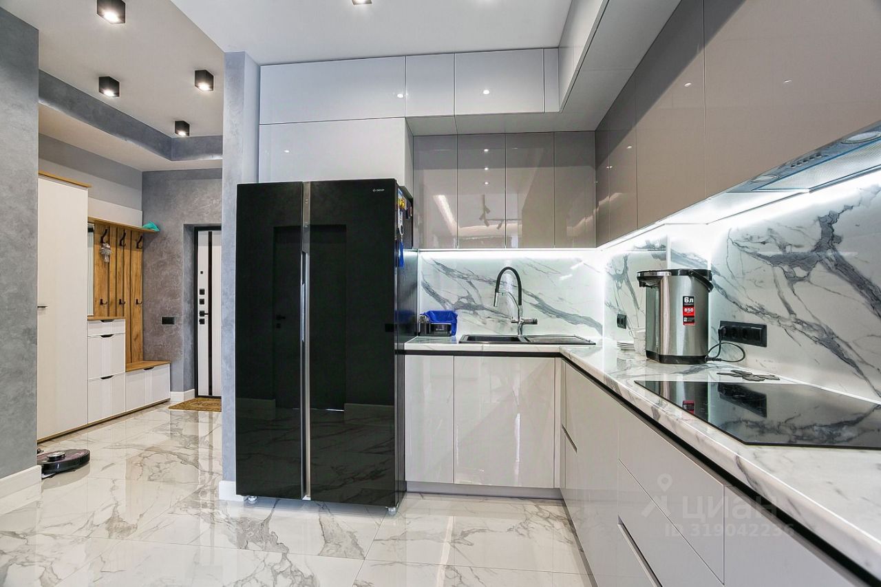 Квартира предлагается с полным комплектом качественной мебели и бытовой техники, включая индивидуальный кухонный гарнитур, гармонично вписывающийся в интерьер.