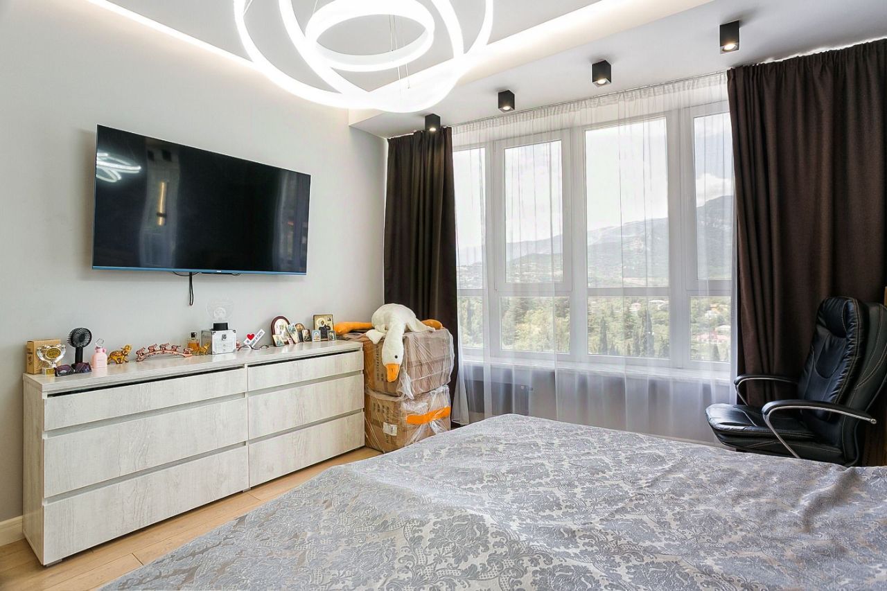 Продаётся изысканная квартира площадью 90 квадратных метров, расположенная на 5 этаже в ЖК Массандровский спуск в Ялте, с панорамным видом на городской пейзаж и горные массивы, представляющая собой оптимальное решение для проживания.