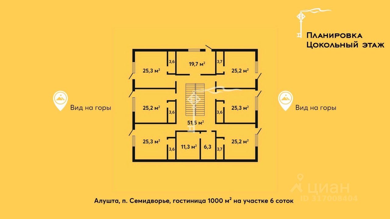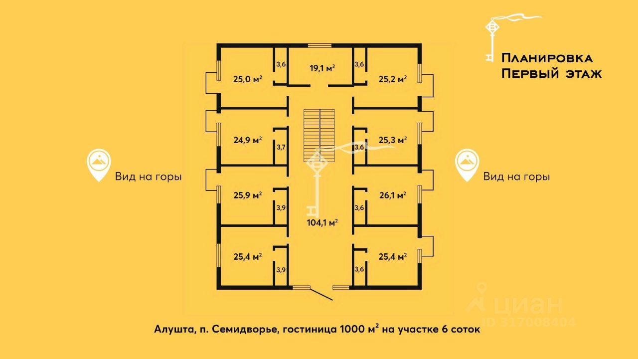 Гостиница площадью 1000 м² расположена на участке 6 соток и функционирует круглогодично. Здание капитальное, трёхэтажное, выполнено из качественных материалов, соответствует современным требованиям гостиничного бизнеса.