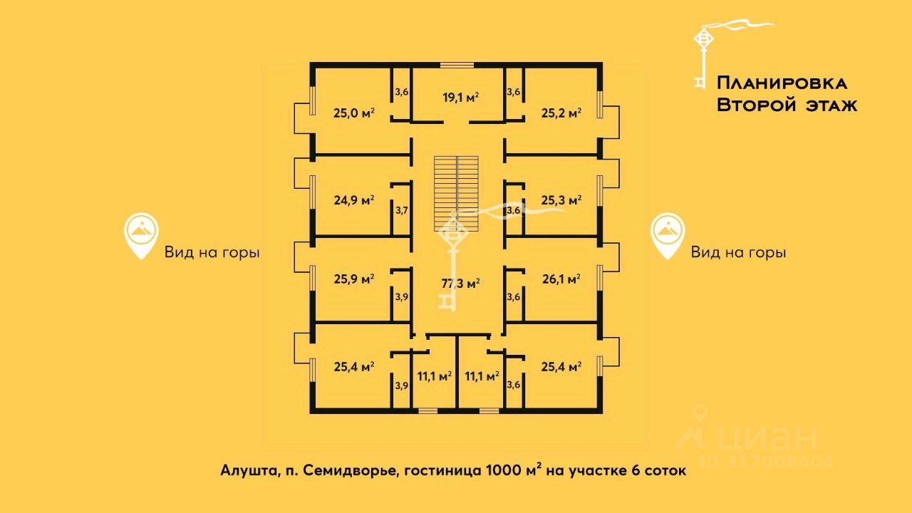 Напротив продаётся второй частный дом отдыха с бассейном площадью 773 м² на участке 15 соток, с 16 номерами. Приобретение двух объектов одновременно позволит увеличить номерной фонд до 40 номеров . При покупке обоих объектов — возможна скидка .