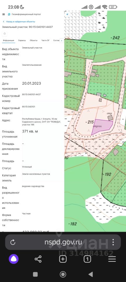 Участок с видом на море, на горы в садоводстве 16 км от Алушты. Снт Победа со всеми коммуникациями, со своей парковкой на въезде. Много постоянно проживающих соседей. Электричество- 3м, водопровод - 10м. Газ обещают вместе с Семидворьем. Участок отеррасирован в 2 уровня, есть место для дома, для видовой террасы и для посадок. Членские взносы 5000р за год.