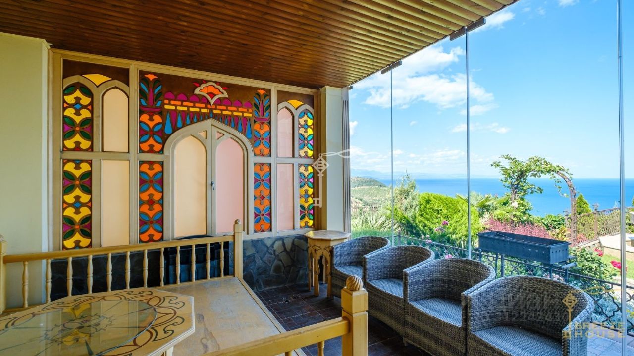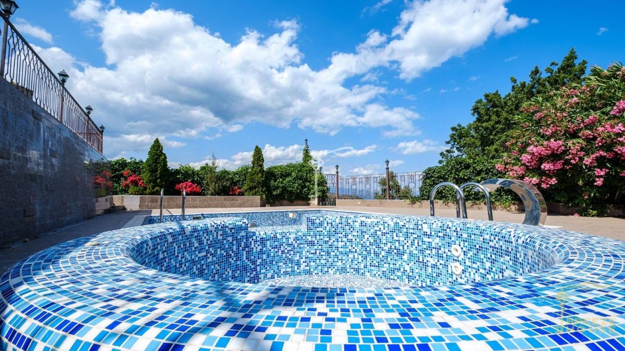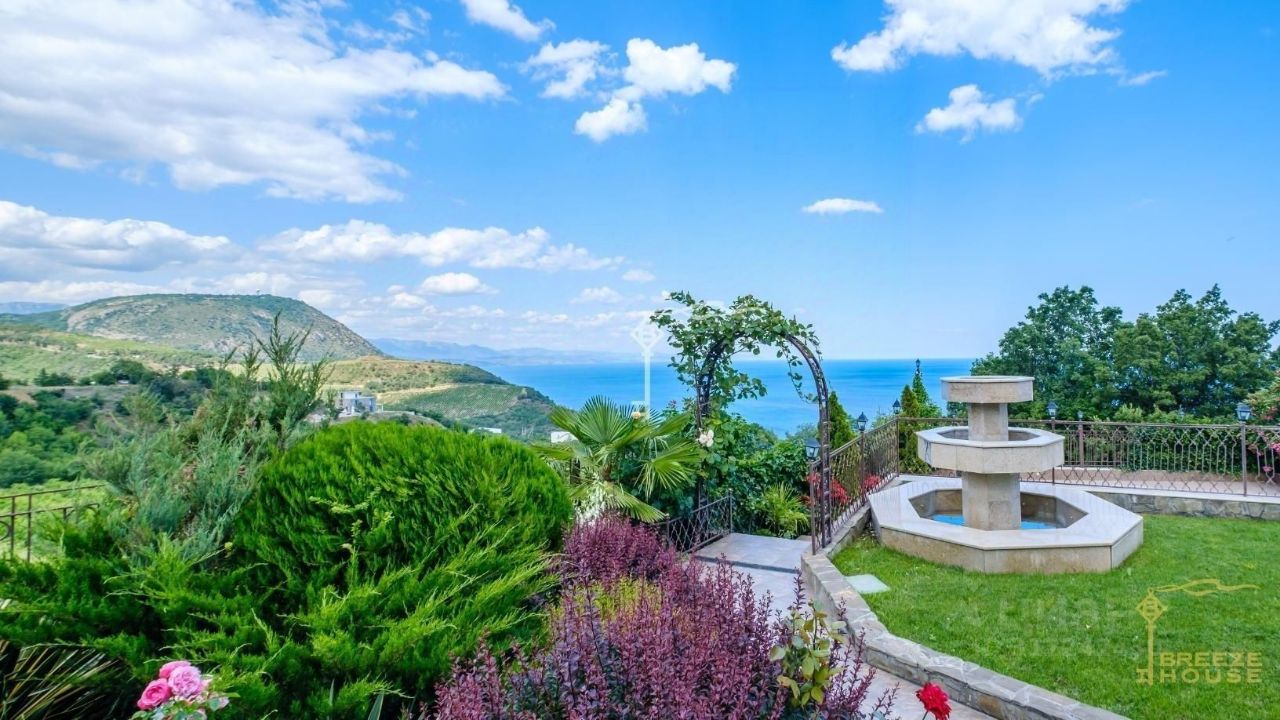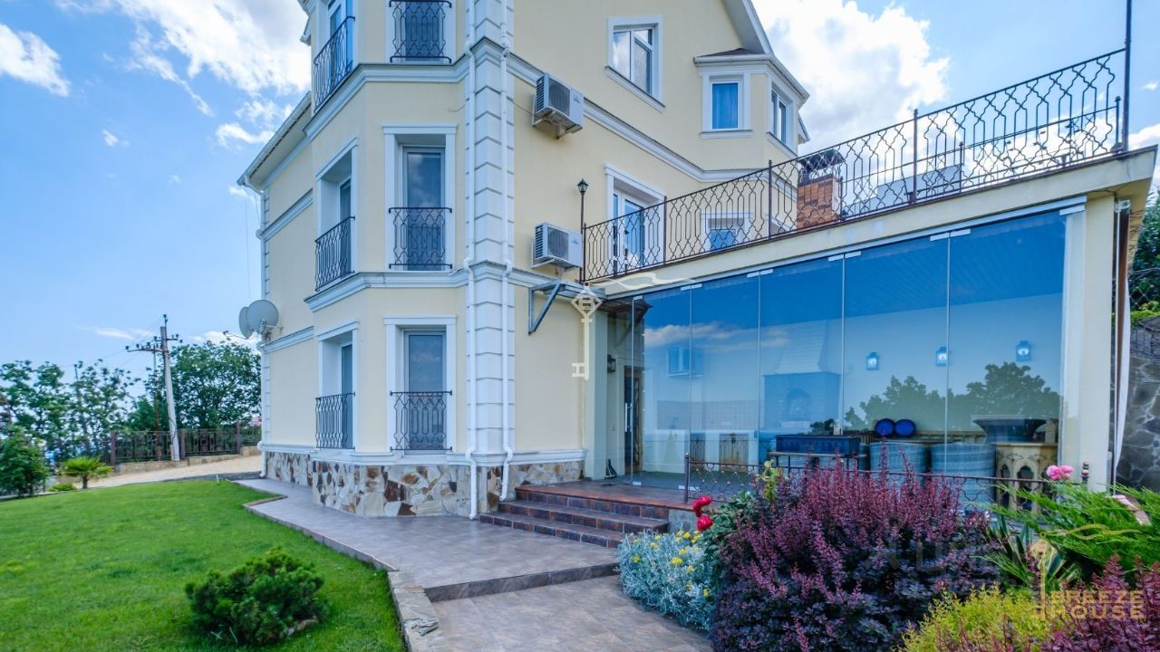 Продажа трехэтажного дома с бассейном и просторными террасами облагороженного каскадным участком 10 соток, с которого открываются необычайной красивые панорамные виды на Черное море, виноградники и даже мыс Меганом.