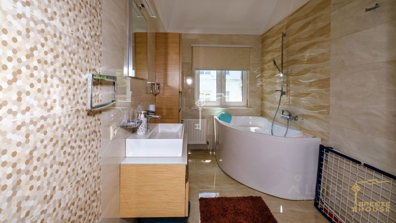 -новый кухонный гарнитур, -корпусная мебель из массива дерева, -установлены умные японские унитазы, -кухонная техника европейских производителей, -сантехника Laufen, Швейцария, -раздвижная система на летней кухне - 10 000 €, витраж - 5000 €.