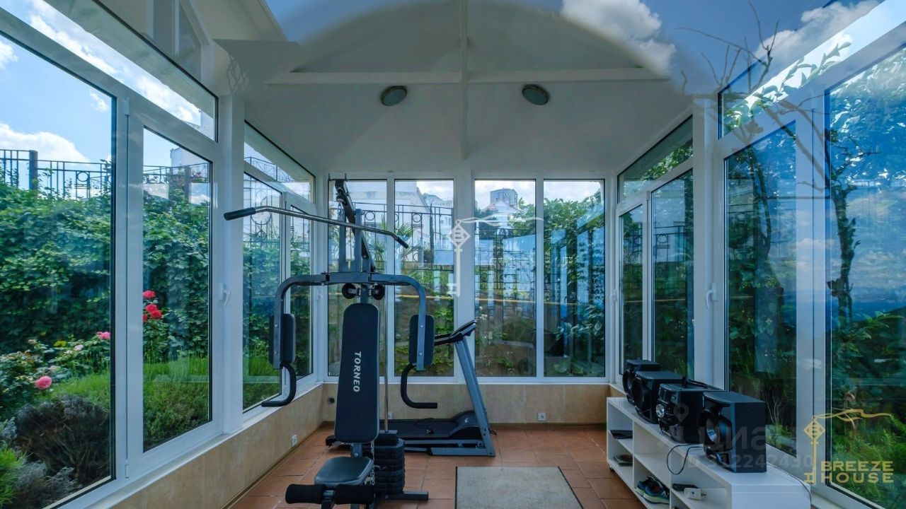 -основной 3-этажный дом 272 м² с сауной, -открытый бассейн 6,5х5,5 метров с джакузи и противотоком, -летняя кухня с раздвижными оконными системами, -тренажерный зал с панорамным остеклением, -гараж на одно авто с роллетными воротами.