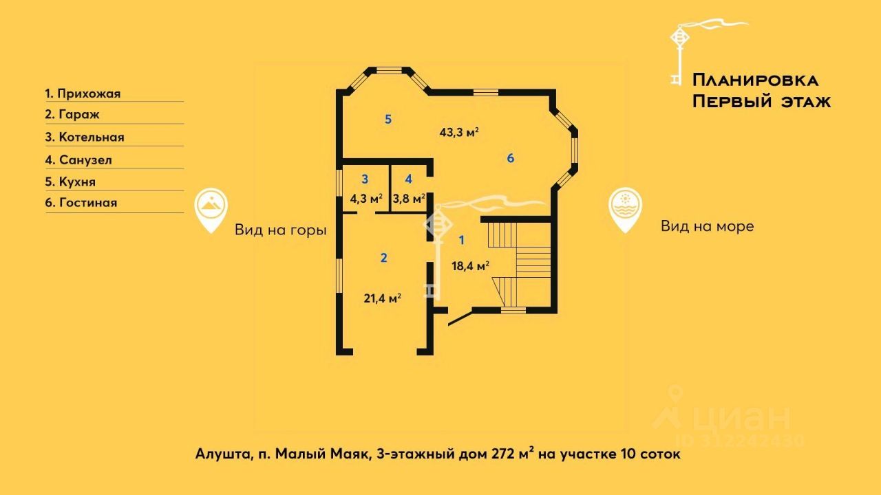 Дом расположен в живописном поселке Алушты, Малый Маяк.