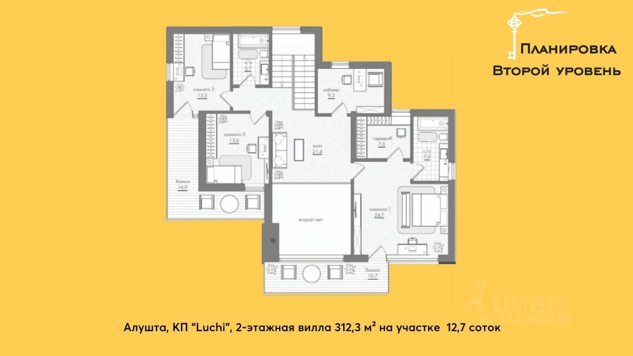 -Общая площадь - 312,3 м² -Площадь террас - 43 м² -Площадь участка - от 11,61 соток Основное: