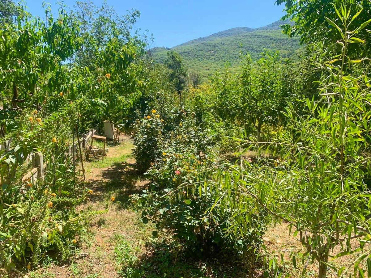 На территории стоит небольшой дачный дом. Много плодовых деревьев и кустарников.