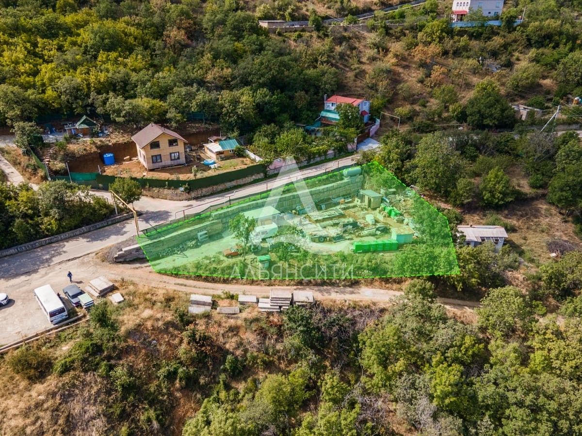 Подъезд асфальтированная дорога. Участок имеет хорошую конфигурацию и ровный рельеф. На участке установлен строительный вагончик, зарыты кольца для выгребной ямы, опорные стены, подготовлен под фундамент участок, дренаж. Остается стройматериал: газоблоки, арматура под 8 тон, швеллера, уголки металлические, трубы, лес для кровли, дорожные плиты и многое другое. Локация: поселок находится в 2 км, 5 минут езды от города Алушта. Остановка 700 метров, магазин и детский сад 1,3 км.