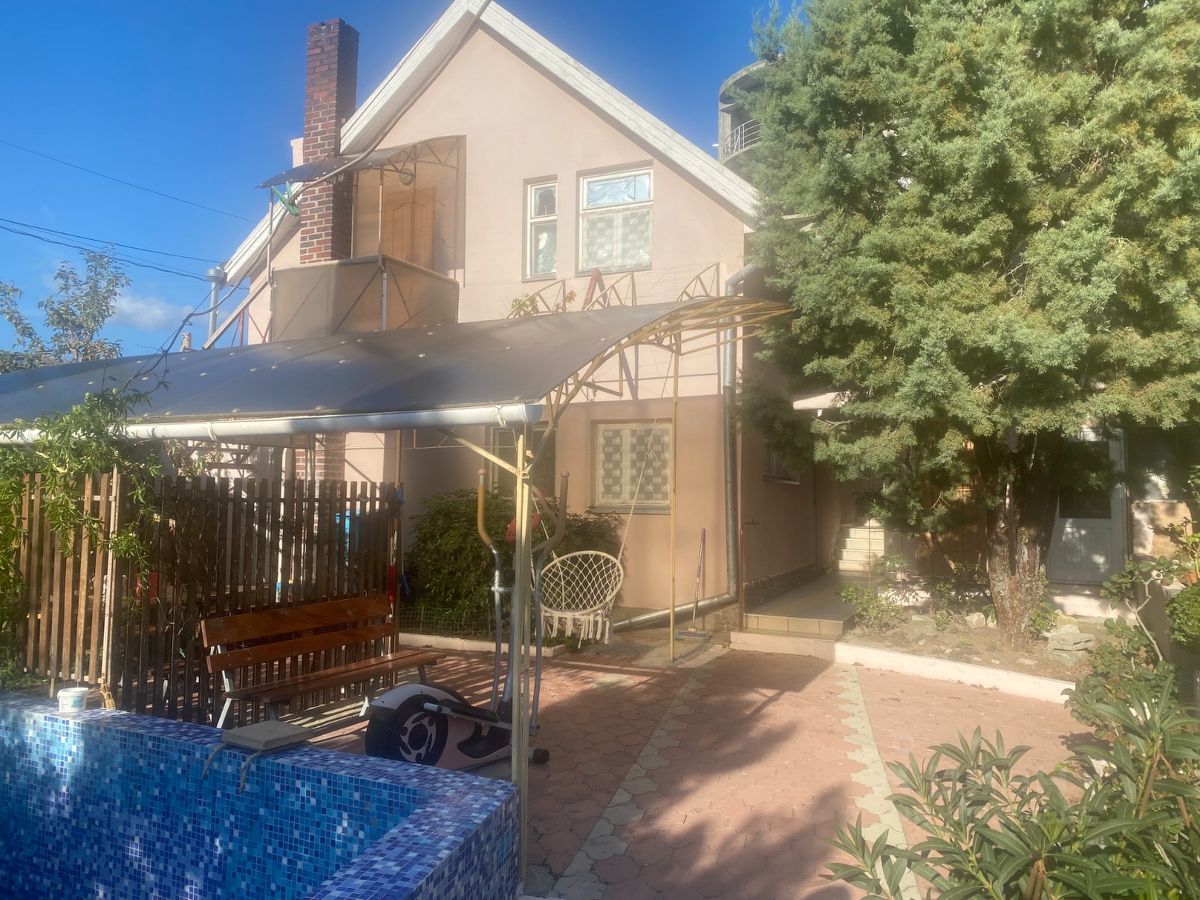 Местоположение: Алушта, п. Рыбачье.,. В зданиях находятся : квартира, гостевые помещения со всеми удобствами техникой и мебелью. Кафе с выходом на дорогу . Имеется котельная , крытая беседка , зоны отдыха в саду , небольшой бассейн . Инженерные сети: 3-х фазный ток, водопровод центральный, центральная канализация , кабельное телевидение , интернет . На участке 6.5 соток. Ёмкость для воды. Хороший вид на море и горы. До моря 100 метров. Возможен обмен на квартиру или дом в Алуште с доплатой.