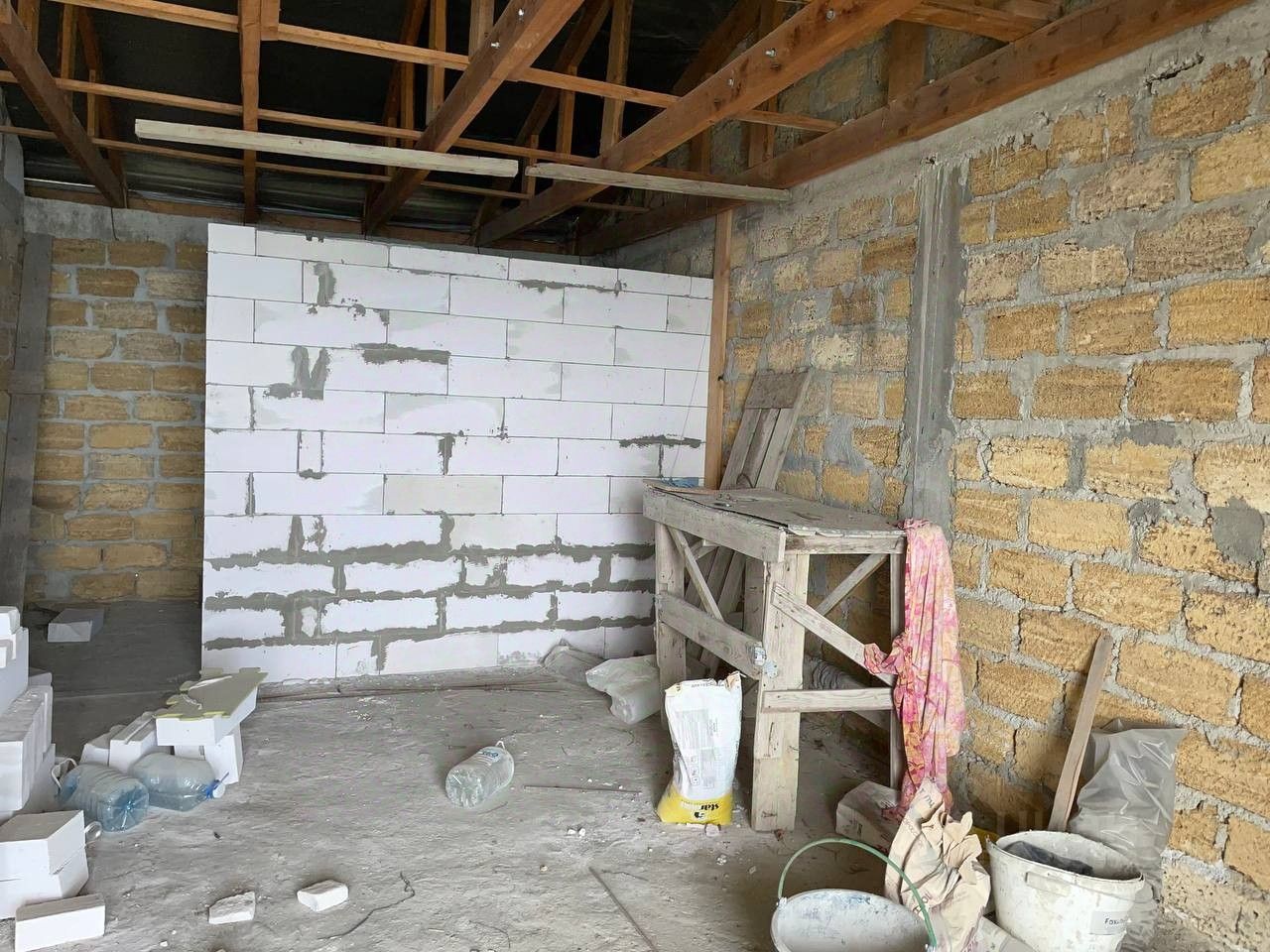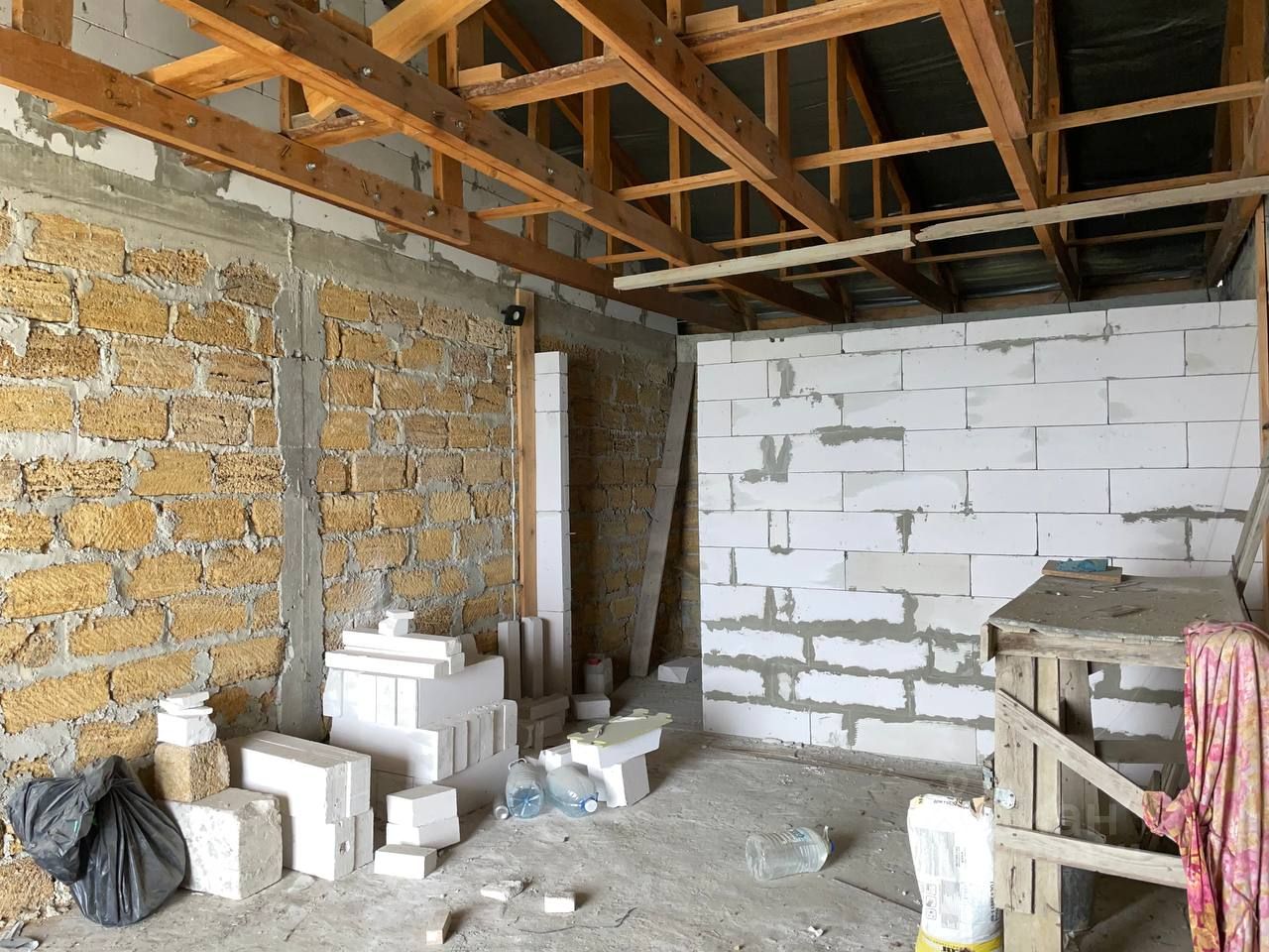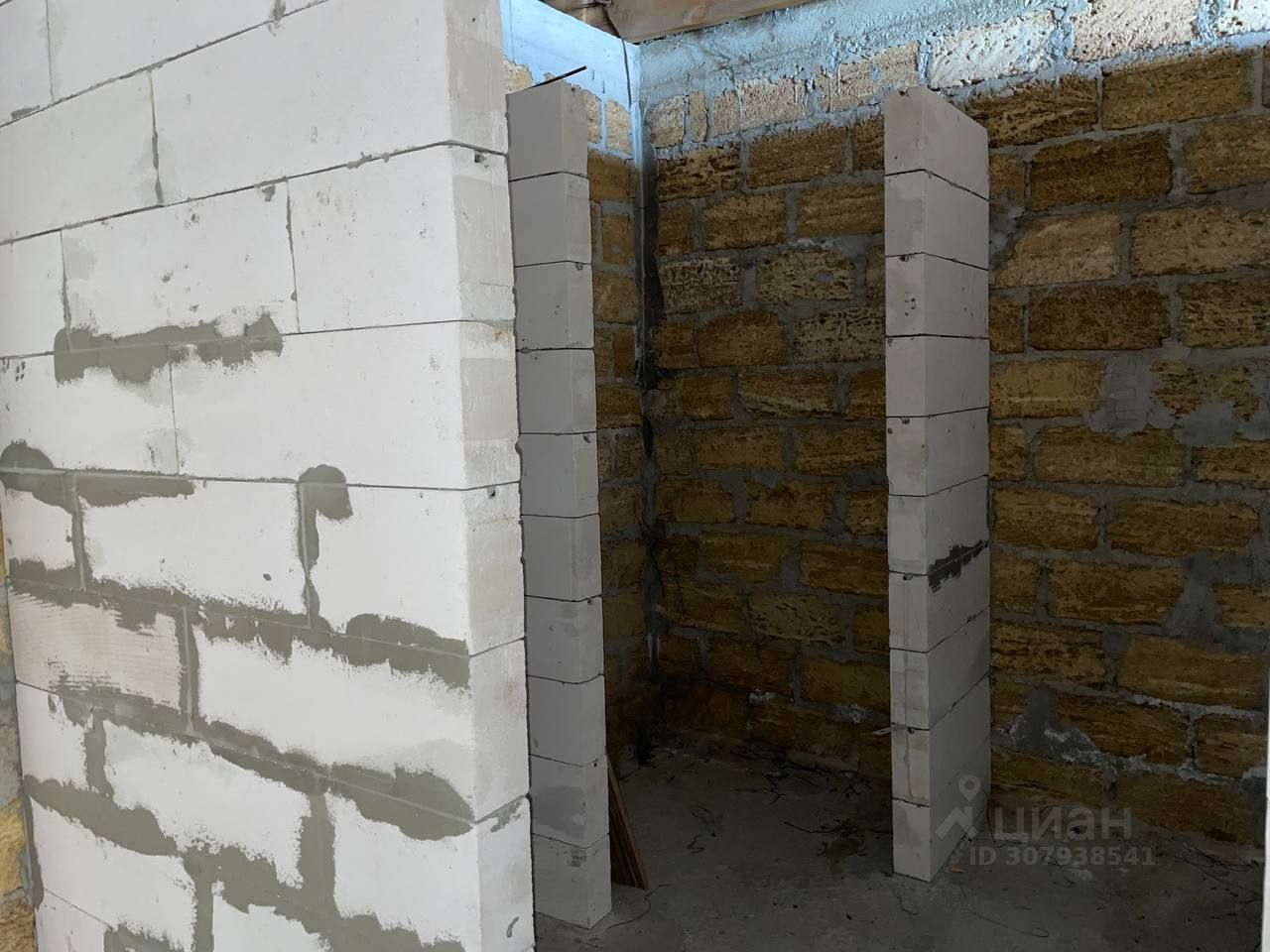 Второй и третий этаж - коробка из ракушняка, установлены стеклопакеты.