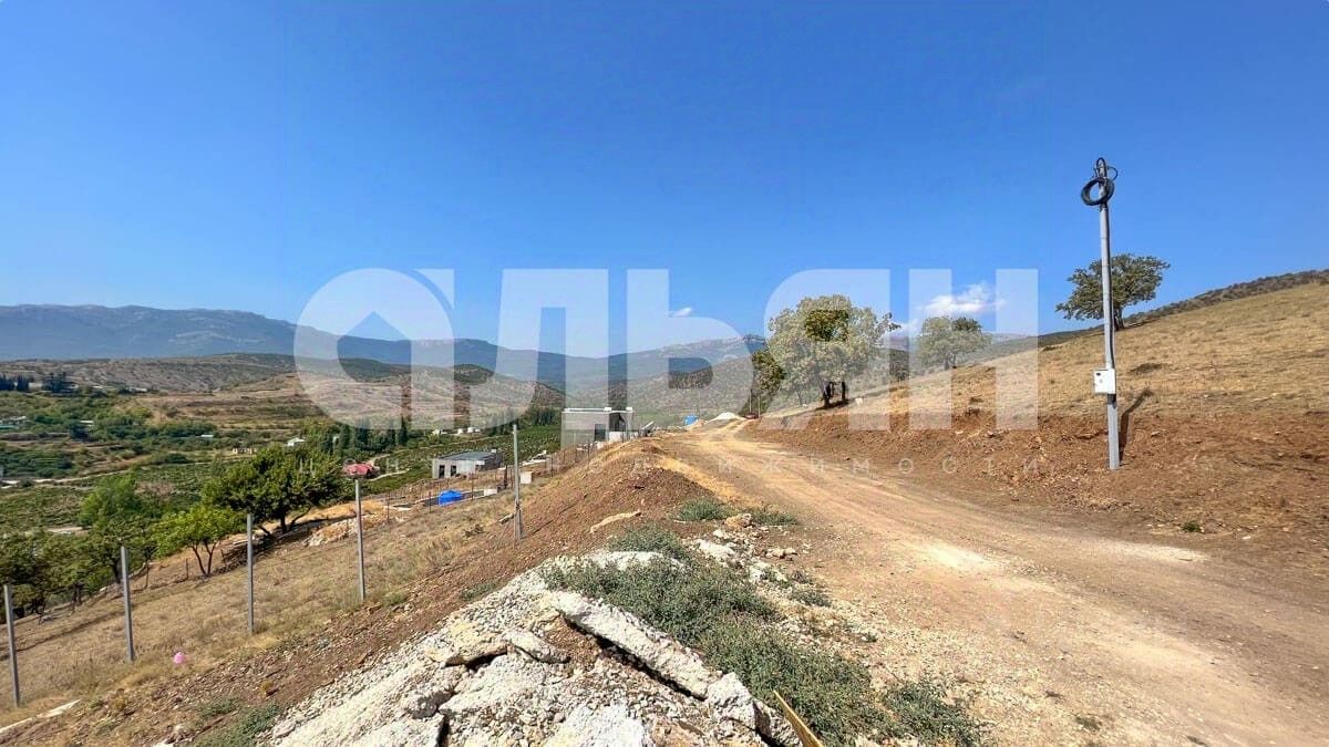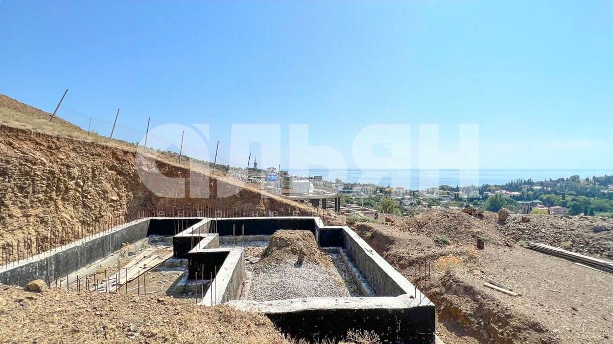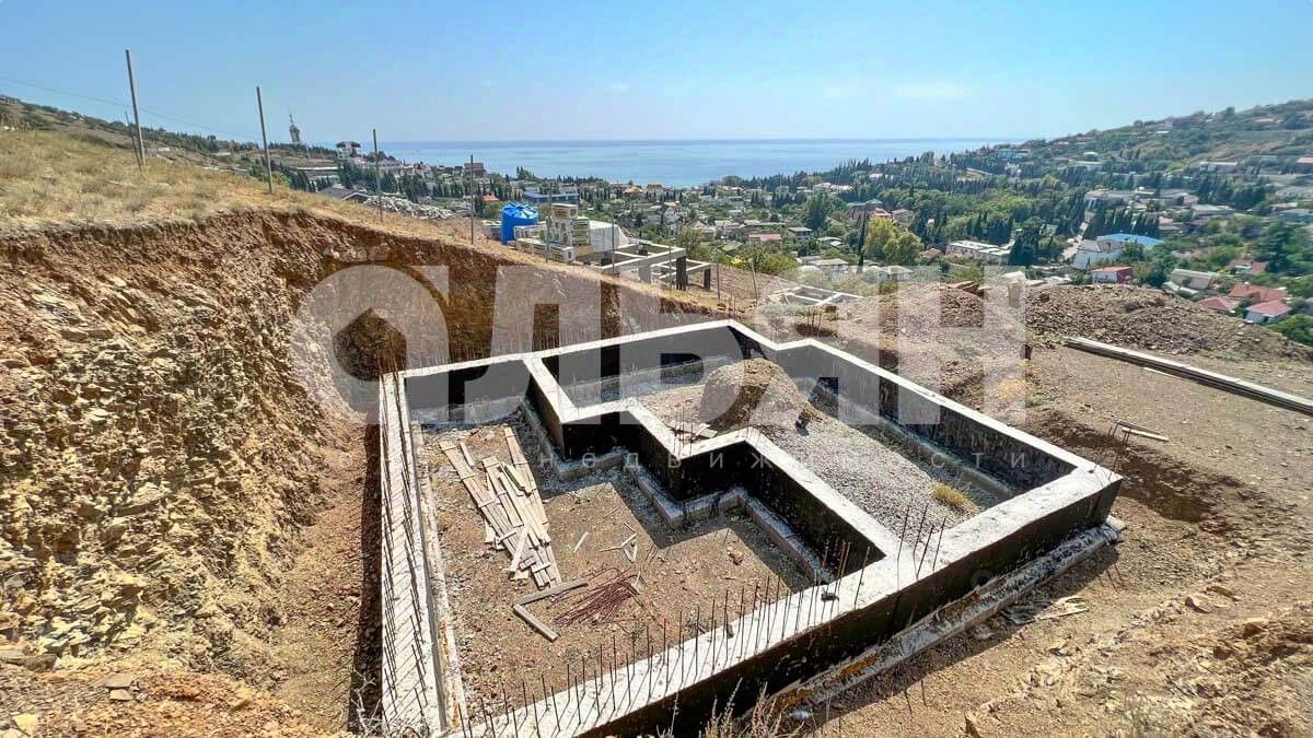 На участке залит ленточный фундамент. Рельеф участка с равномерным уклоном с видом на горы и море, подъезд 800 метров грунтовой дороги с асфальтированной. Коммуникации: на электричество получены ТУ на 15 кВт, ближайшая точка в 100 м, водопровод в 200 м, канализация (септик). Получено ГПЗУ, также есть готовый проект жилого дома. Локация: больница, аптека, церковь, магазины, кафе, парк, детская площадка, дом культуры и творчества, продуктовый рынок. Расстояние до Алушты 26 километров.