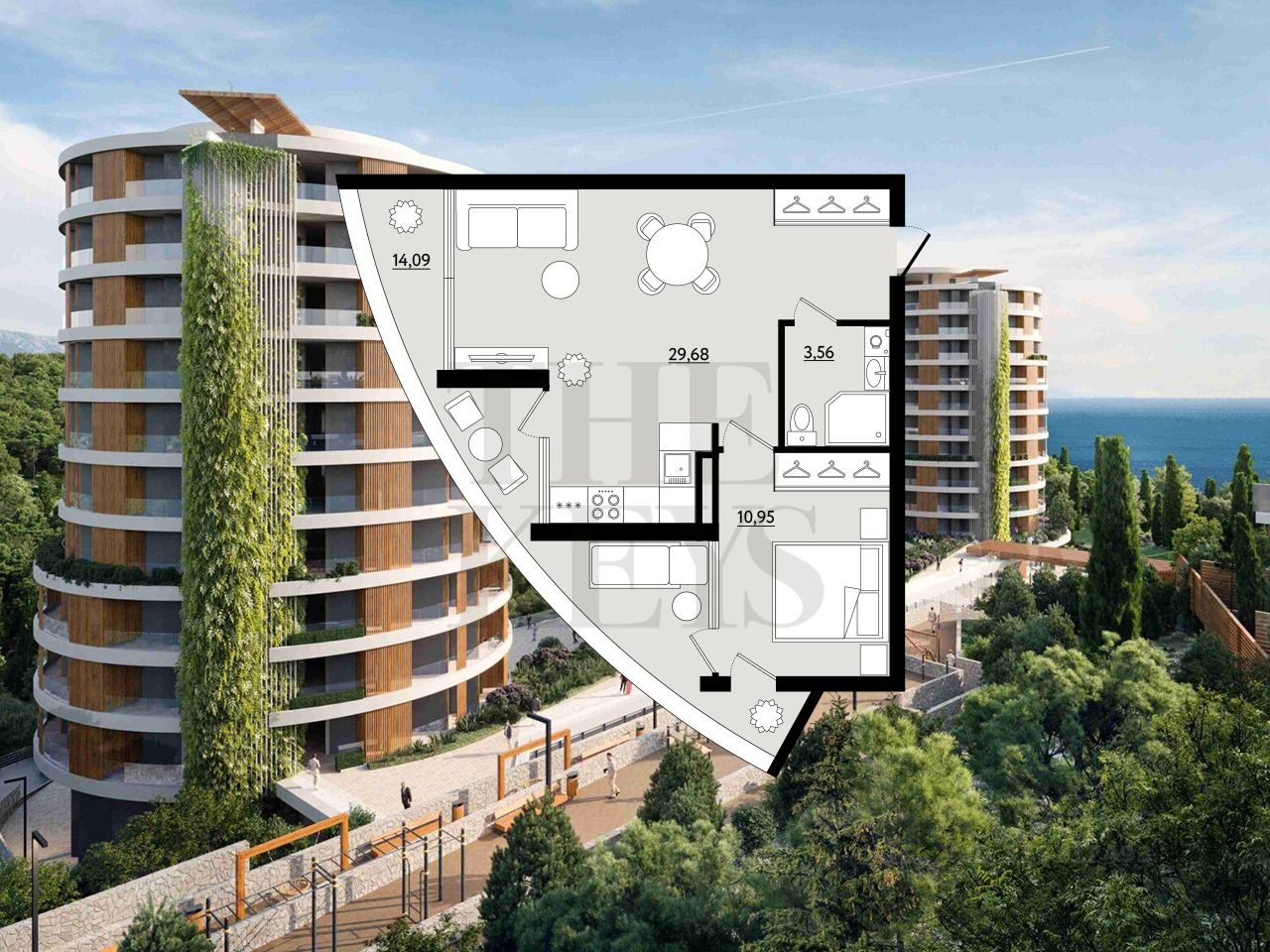 Параметры объекта: - Если собираетесь зарабатывать на сдаче в аренду, можно заключить контракт с управляющей компанией, передать свой апартамент в доверительное управление и получать доход, находясь в любой точке мира - Высота потолков 3м. что зрительно увеличивает пространство - Большая кухня-гостиная 29,68 м. для встречи с самыми близкими, которую можно зонировать и сделать дополнительную комнату - Просторная терраса 14,09 м. с шикарными видовыми характеристиками