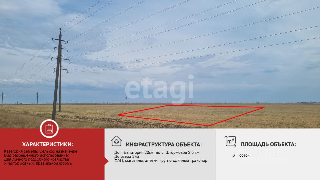 Недалеко от Черного оря! Море в этих местах входит в ТОП мест Крыма с самой чистой и прозрачной водой и белоснежным песком!!! до Ойбурского озера 2 км. Озеро Ойбурское - это ''МЁРТВОЕ МОРЕ'' Крыма с целебными чёрными и голубыми грязями. До г. Евпатория 20 км., до с. Штормовое 2,5 км. Самое выгодное предложение в данном массиве. Звоните пишите все расскажу и подскажу. Отличный вид на море и лечебное озеро!