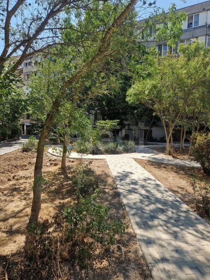 Двухкомнатная квартира на первом этаже девятиэтажного дома в Евпатории, улица 60 лет Октября, предлагается в отличном состоянии после свежего ремонта.